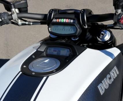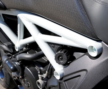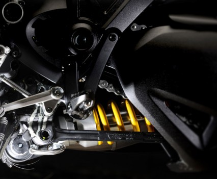 The 1198cc engine has a bore and stroke of 106 x 67.9mm, the same as the Ducati 1198, however with 11.5:1 compression compared to the 12.7:1 found on the superbike. The Dual Spark ensures a complete and efficient burn, with Mikuni elliptical throttle bodies providing the fuel and power delivery controlled by the RbW system.