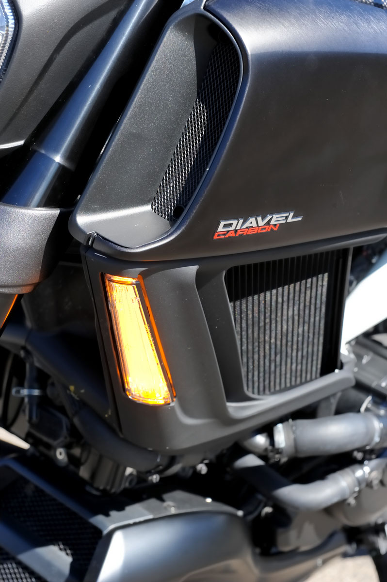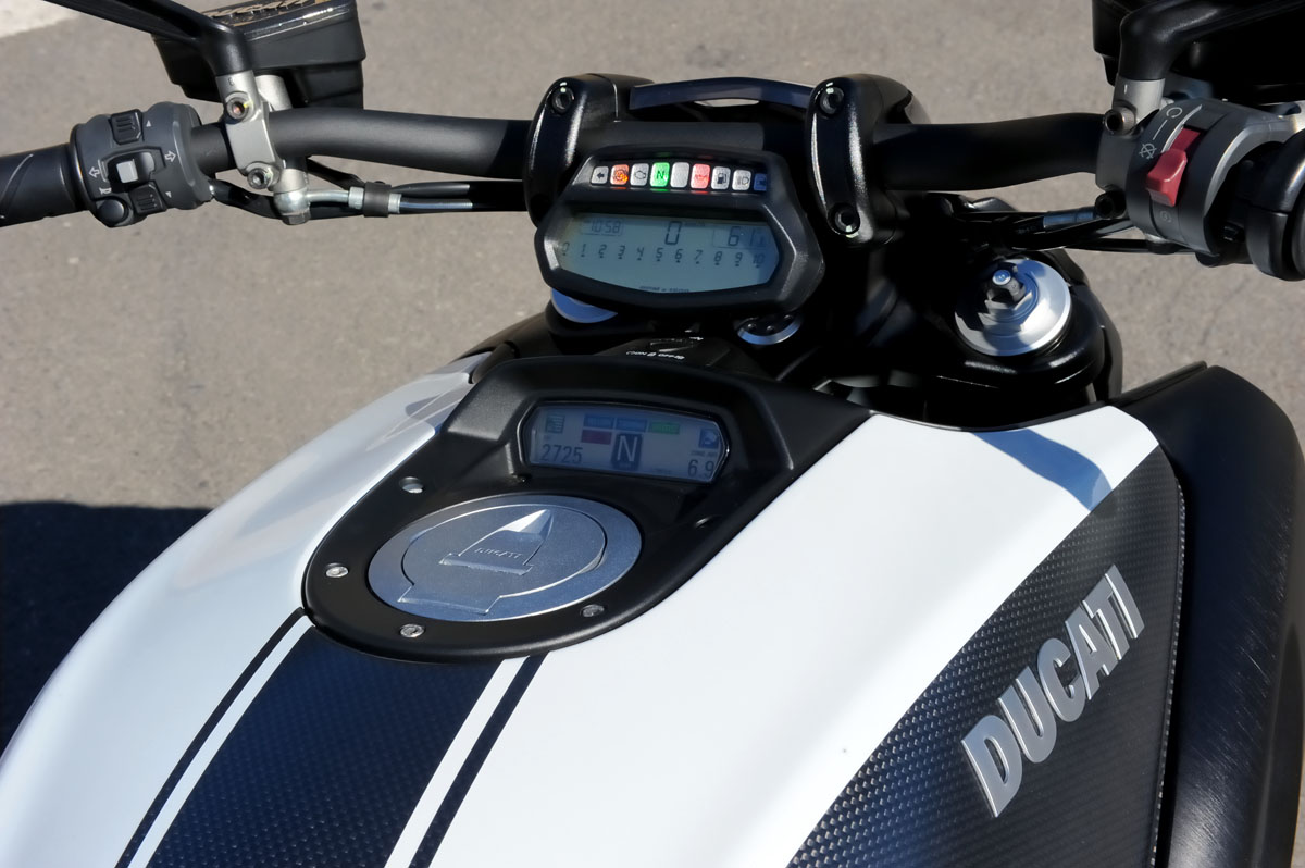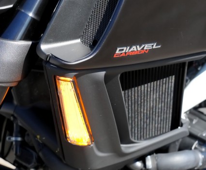 The LED lights are also nice kit, although the front light tends to spread light a bit wide rather than further down the road, while the indicators are very integrated and highly visible and the rear brake lights instantly recognisable as a Diavel.