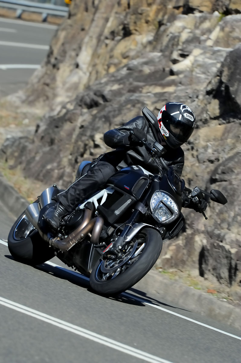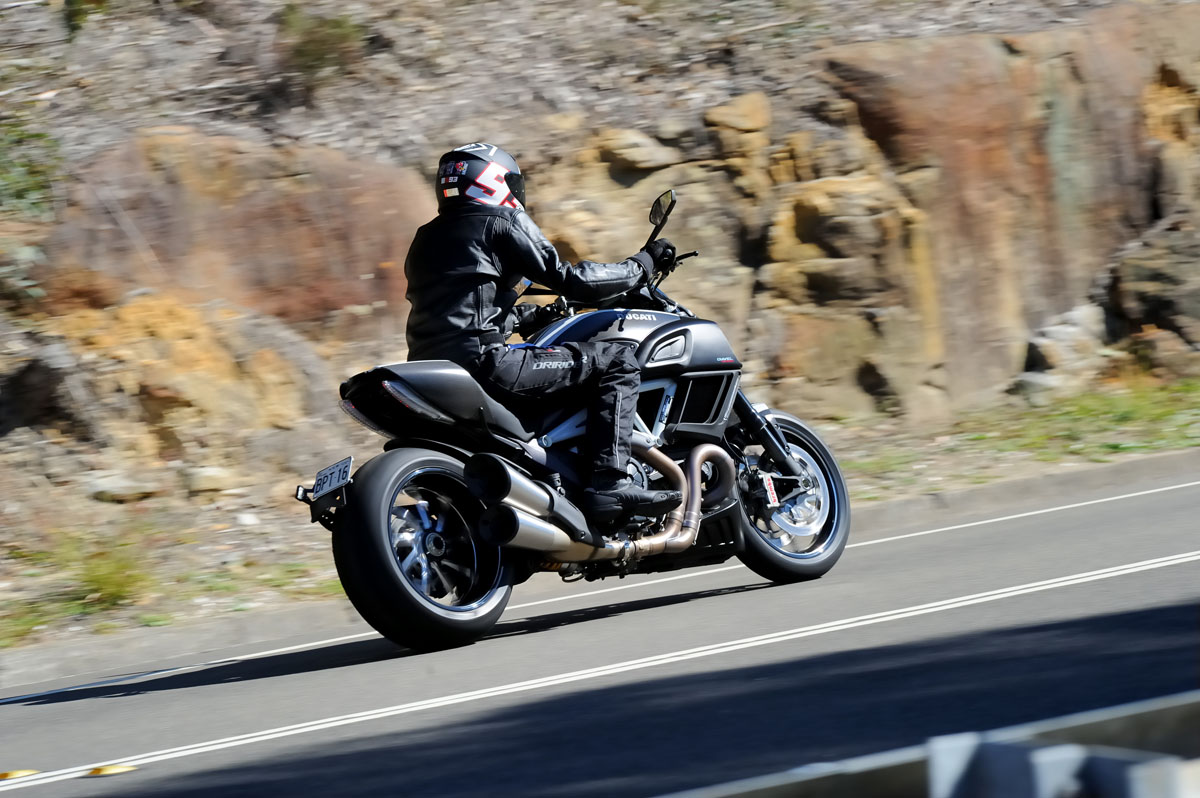 Naturally I’d heard about the Diavel prior to finally getting to test one but to be honest I had no idea what to expect. Rumour suggested eye-popping braking, astonishing performance and power and handling like nothing you would expect. Of course that could mean anything when you’re talking about a cruiser – what was the yard stick this was being compared against, after all?