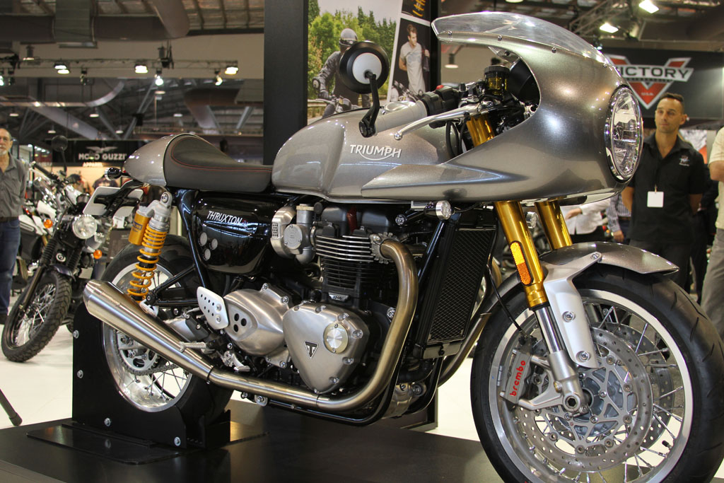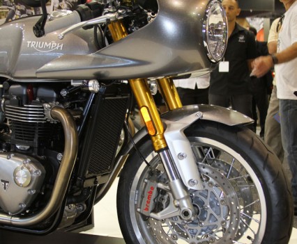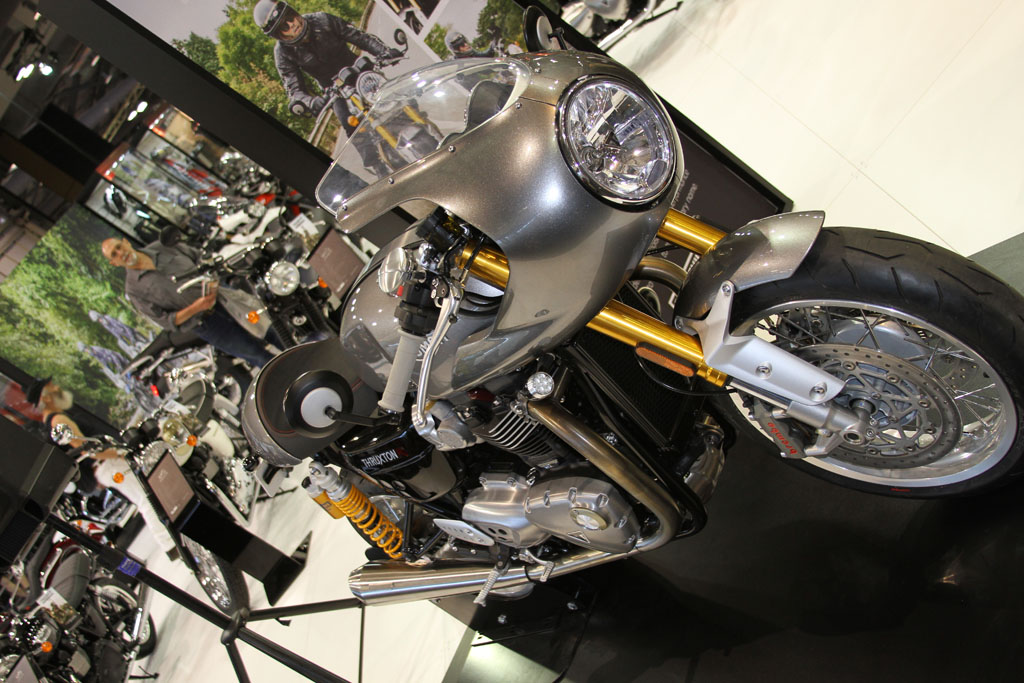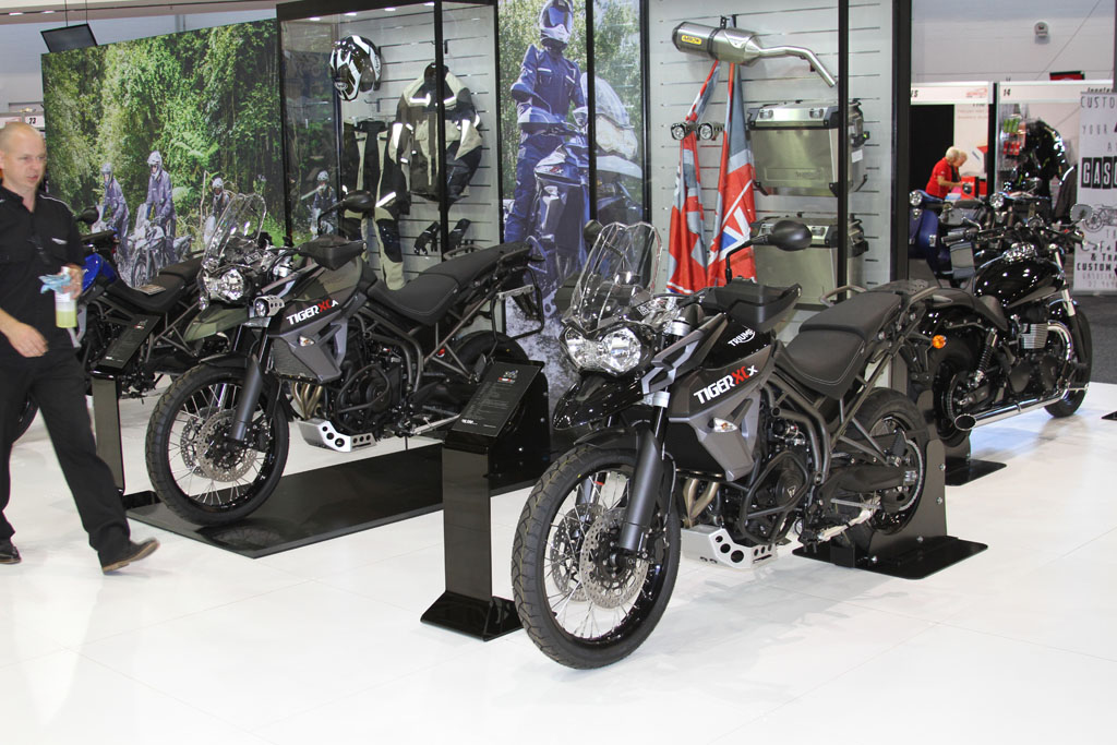 At the Triumph stand attendees were offered their first opportunity to check out the new awesome new Bonneville line, including the Street Twin, T120, T120 Black, Thruxton and Thruxton R. The newly announced at EICMA 2016 Speed Triple wasn’t in attendance, while the Tiger 1200 will be revised in 2016 and follow in the Tiger 800’s footsteps with the XR (road) and XC (off-road) sub-model designations.