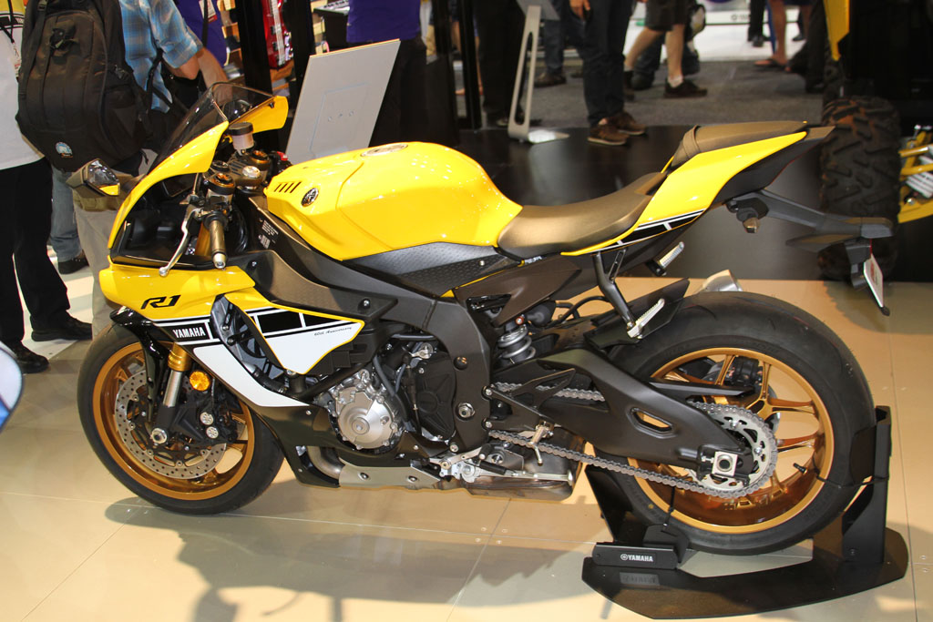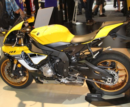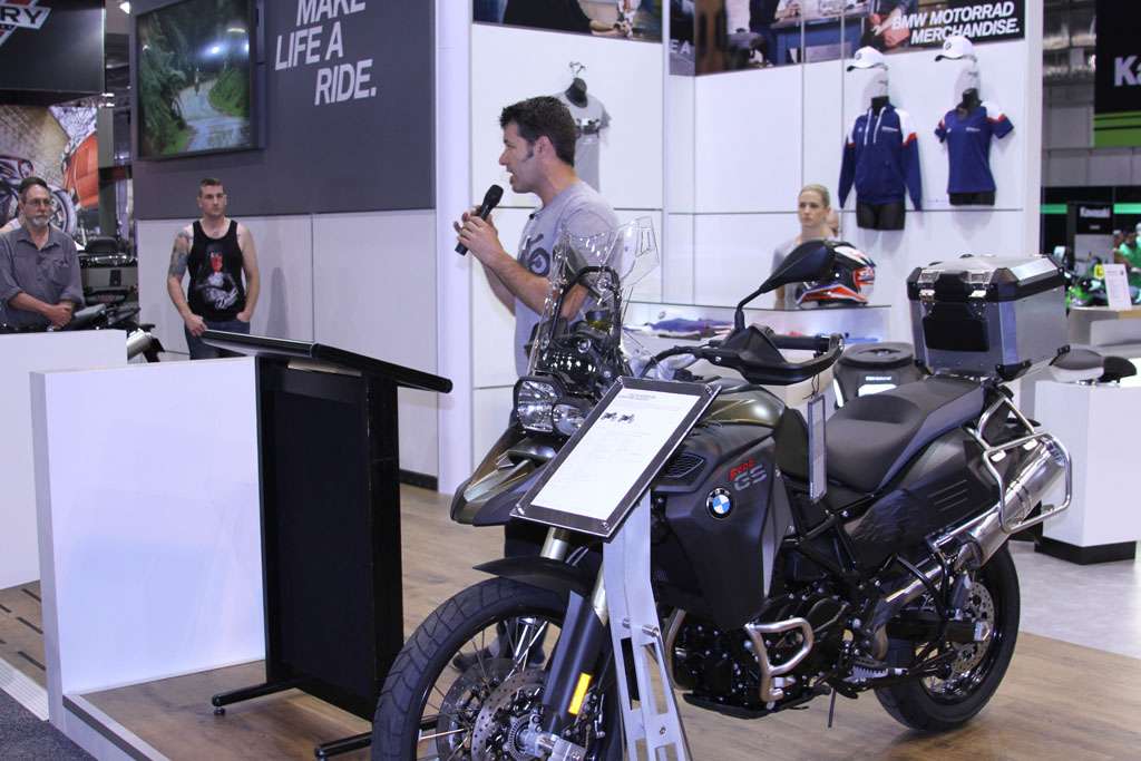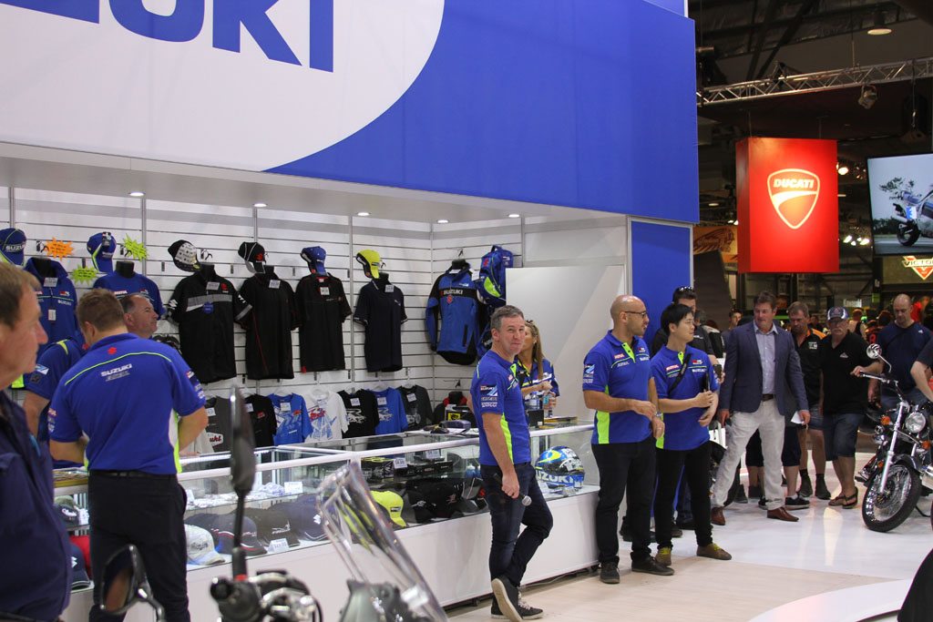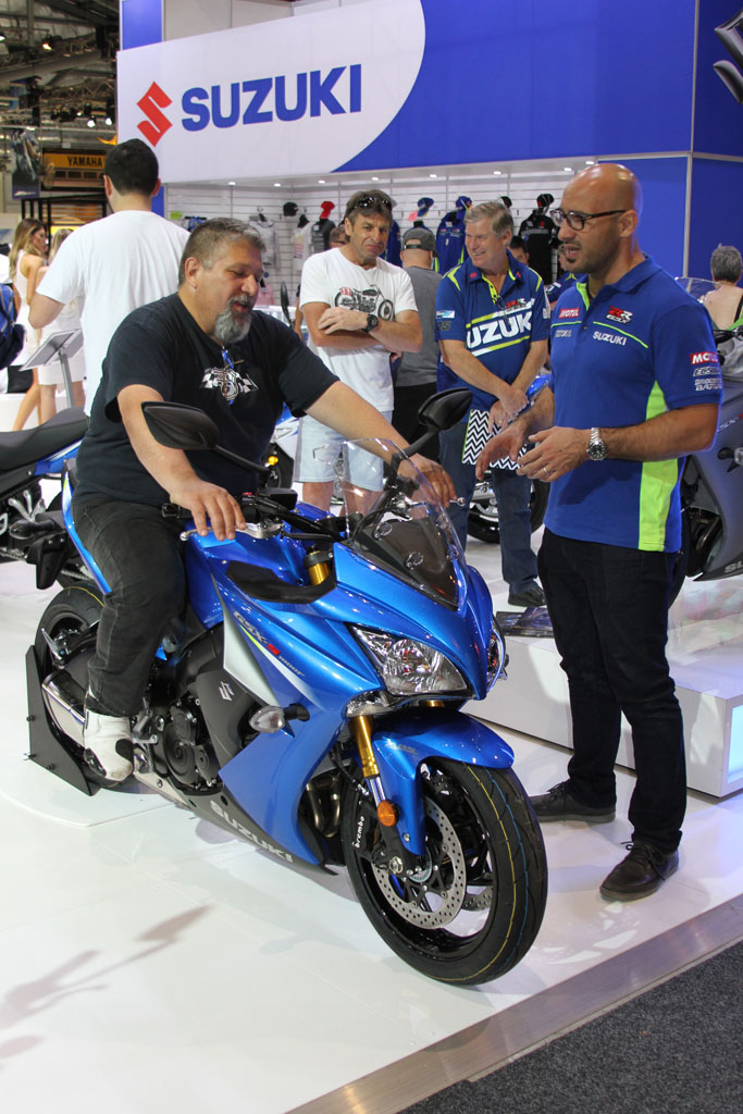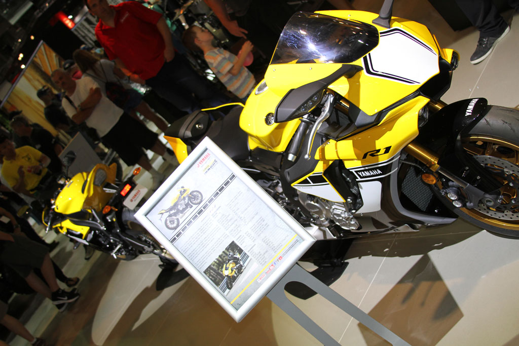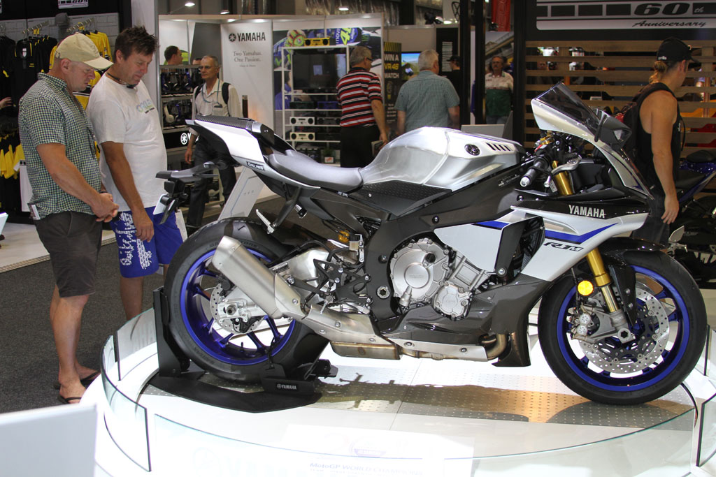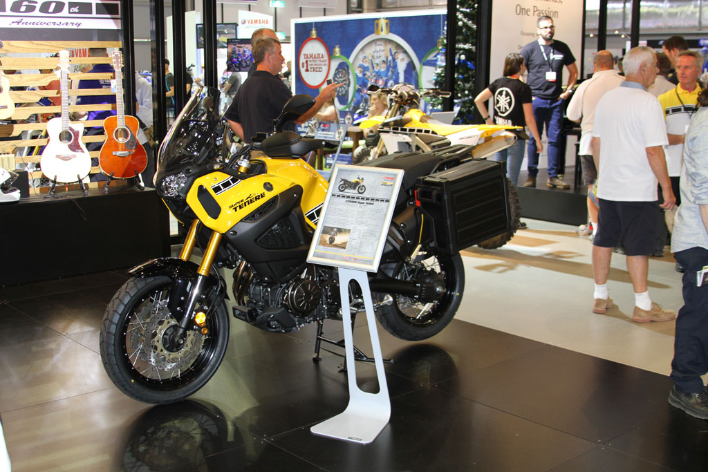 The massive Yamaha stand meanwhile received a guided tour by Yamaha’s Sean Goldhawk himself during the media walk, with an array of 60th anniversary models on display with the iconic yellow, white and black ‘bumble bee’ livery, including the 2016 -WR450F, YZF-R1 and YZF-R1M (available in Silver Blu Carbon only) which will be available in the first quarter of 2016, the YZF-R6 which is already available in the anniversary colours with two additional colours available in January, the XT1200Ze available now, and the YXZ1000R which will be available in the first quarter of 2016. Kel Carruthers was also invited by Yamaha to celebrate the colour scheme he originally introduced.