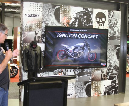 At Victory the new Ignition concept was revealed with the bike featuring the next evolution of the Victory powerplant, which will be powering a yet undisclosed 2016 model, with the Ignition concept designed by multi-time drag racing champion Urs Erbacher, who is based in Switzerland.