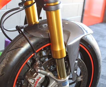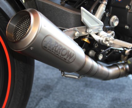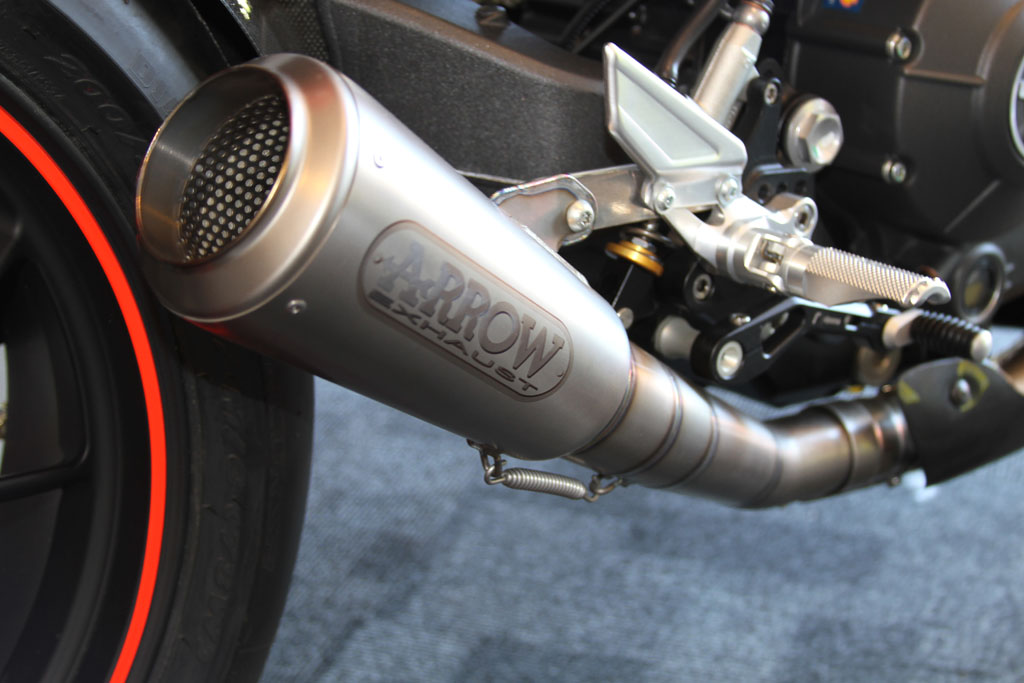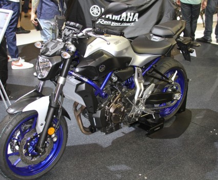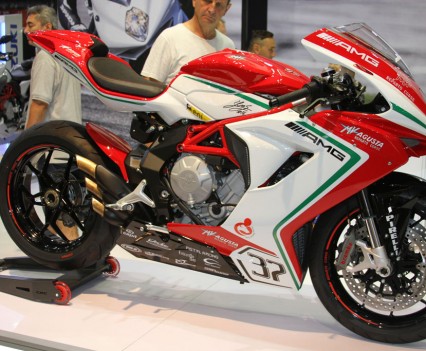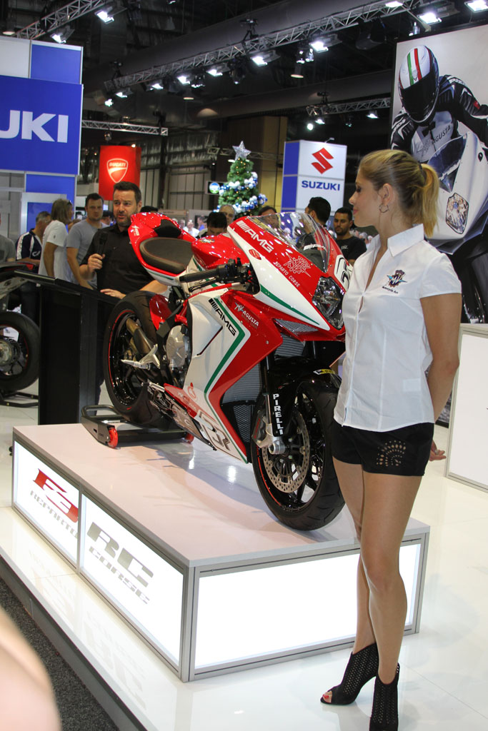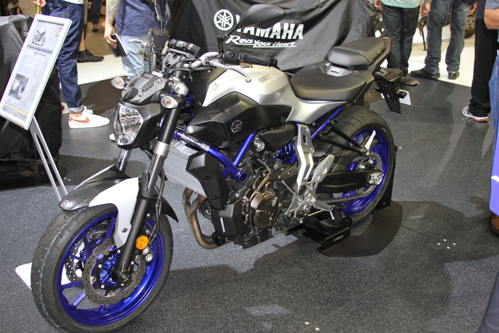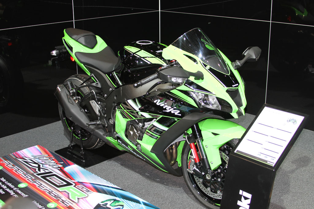 At the Kawasaki stand the recently announced 2016 ZX-10R was on display, featuring the first Showa BFF suspension on a production bike, as well as including an all new electronics system derived from Kawasaki’s success in WSBK, including a Bosch five-axis IMU, throttle-by-wire, a revised and improved traction control (S-KTRC) with five modes, launch control, and engine braking control. ABS also includes a Cornering Management Function which assists in reducing a bike’s tendency to stand up when hard on the brakes while leant over, by distributing the braking force intelligently. The chassis has likewise been revised, including the adoption of larger 330mm front rotors, with Brembo M50 calipers and an Ohlins adjustable steering damper.