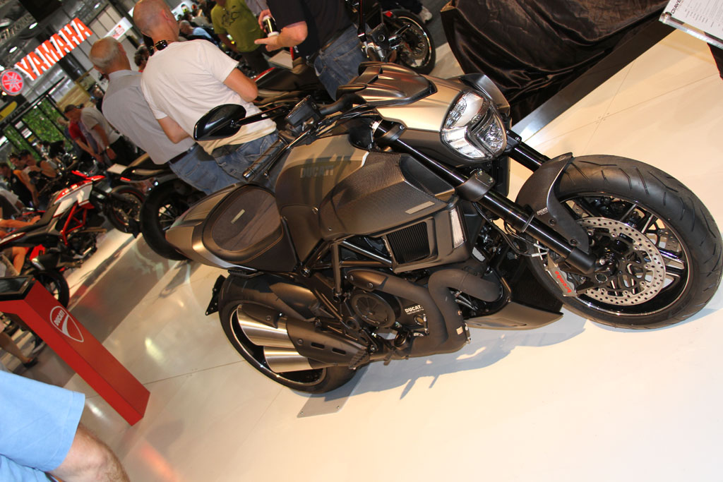 At the Ducati stand the excitement was palpable with the brand displaying three new models only just revealed at EICMA, with the XDiavel representing the meeting of two worlds -cruiser low speed fun with Italian adrenaline filled sports riding. Ducati describe this via three numbers -5000, the point of peak torque generation, 60 representing the number of rider ergonomic configurations and 40 -the bike’s maximum lean angle. The XDiavel features a new Ducati Testastretta DVT 1262 engine and is the first Ducati to feature a belt final drive.