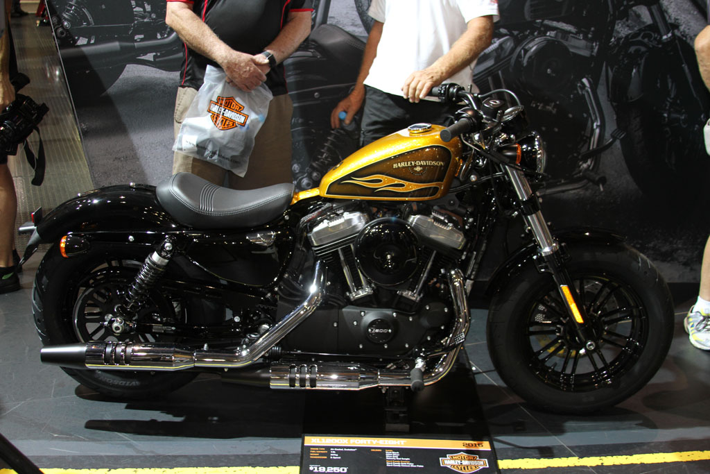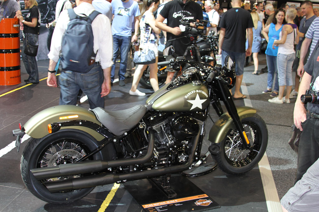 At the Harley Davidson stand the new Sportster Iron 883 was also introduced, with new suspension, seat, exhaust and wheels and joined the KLX1200 Forty-Eight, Softail Slim S, Fatboy S and Street 500 2016 offerings on display.
