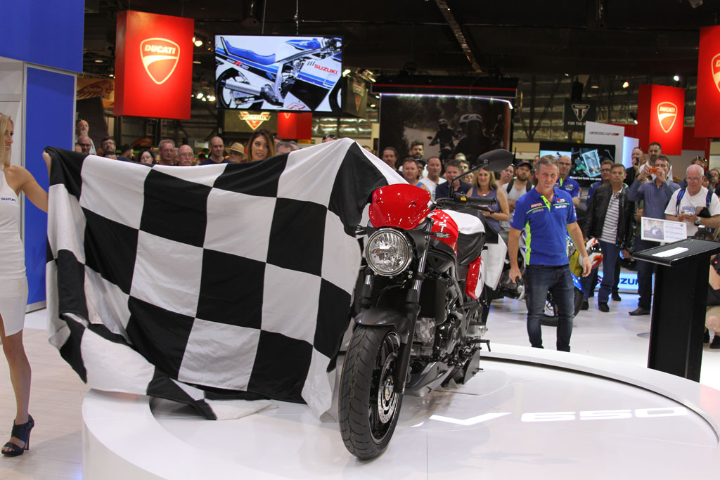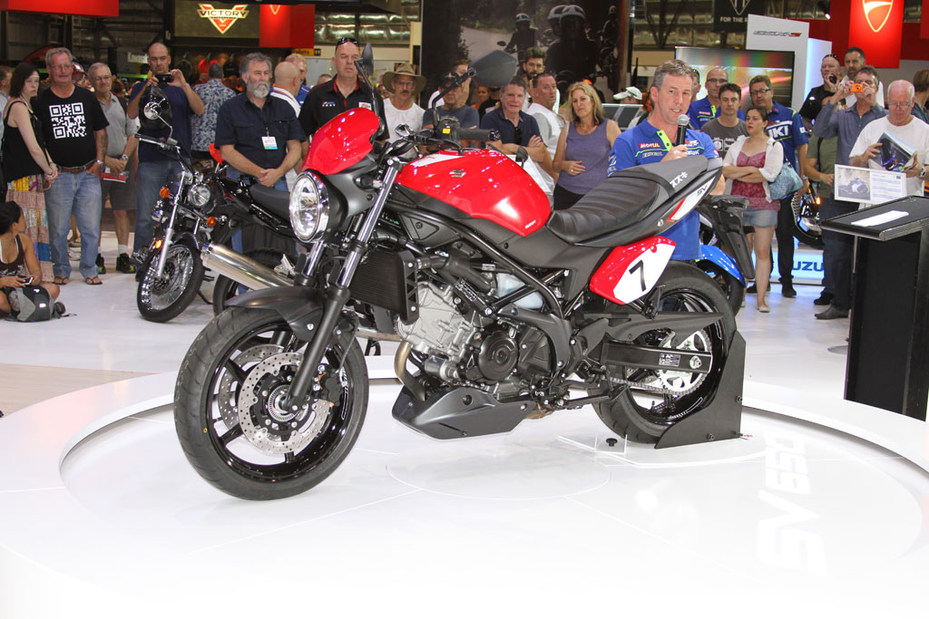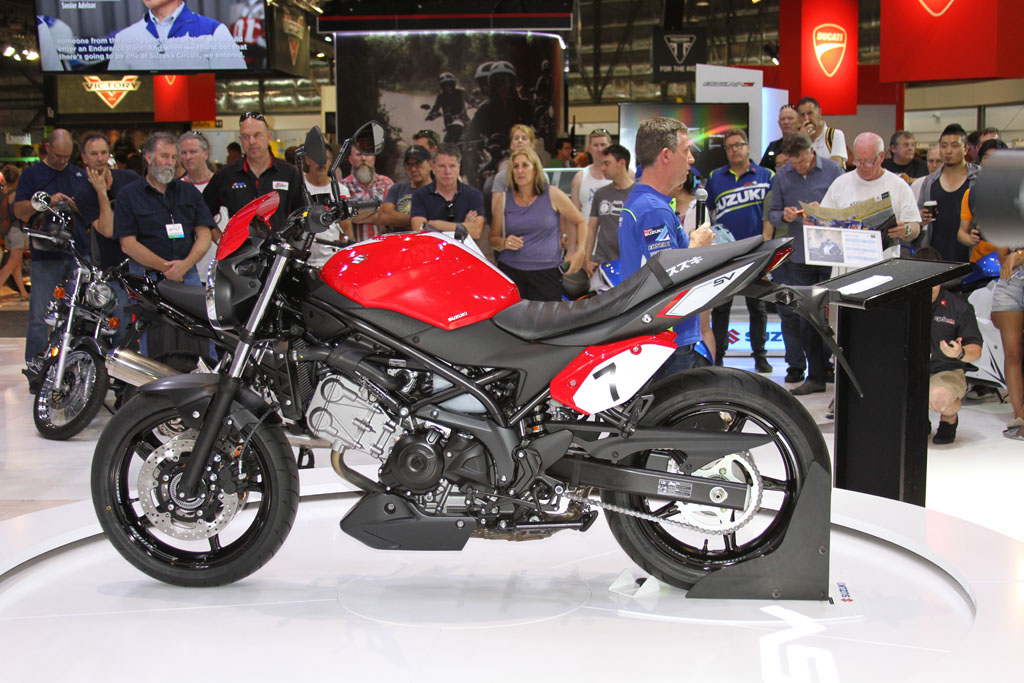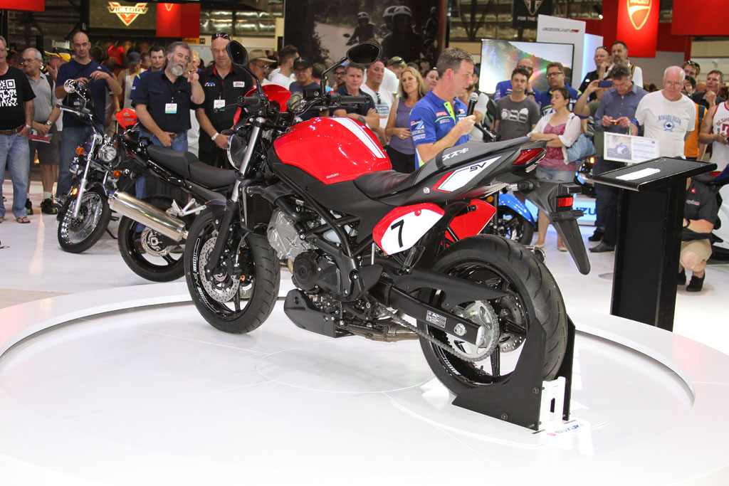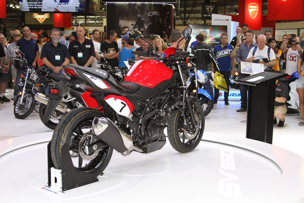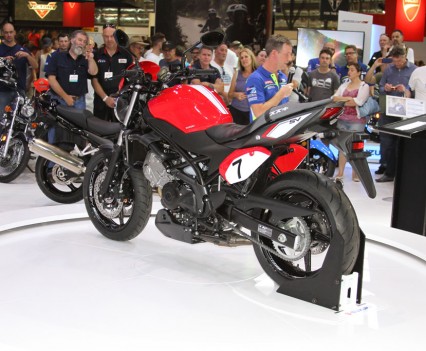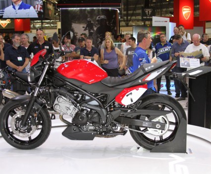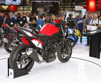 At the Suzuki stand on-lookers were treated to a first look at the 2016 SV650, with the newly announced at EICMA GSX-R1000 ‘concept bike’ expected to arrive late 2016. The SV650 itself features a 645cc 90 DOHC liquid-cooled V-twin engine that has been refined with over 60 redesigned parts and components, with a new trellis frame, revised styling and additional technology. It’ll come standard with a Low RPM Assist function to help with taking off and low RPM riding, and will also benefit from the Suzuki Easy Start System, which starts the bike at the press of a single button.