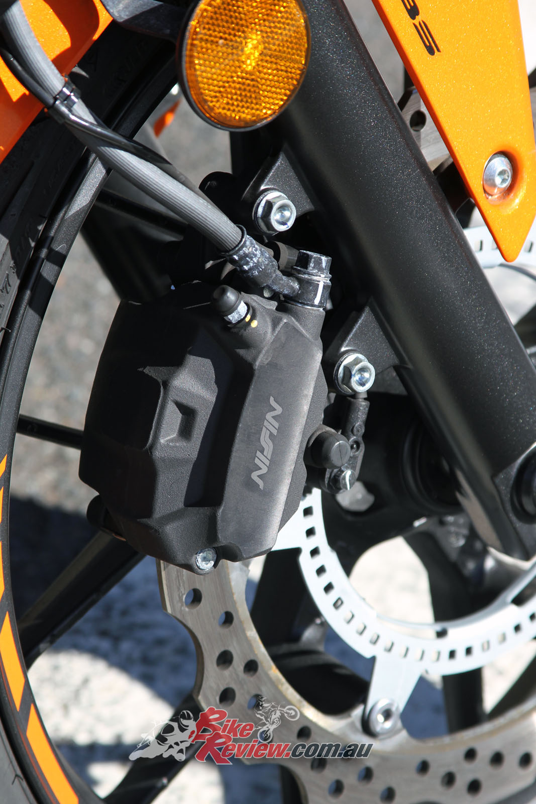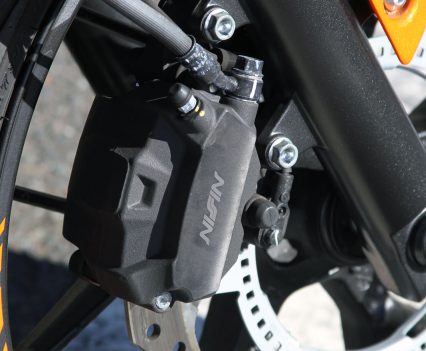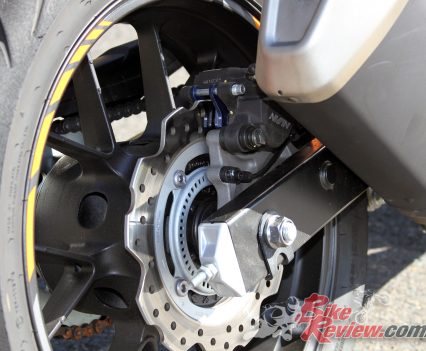 The front brake was also a standout with the single wave rotor and Nissin caliper providing impressive stopping power, particularly considering the bike weighs in at 197kg, that’s full capacity weight that’s being easily drawn to a halt by a single two-piston caliper, granted on a larger 320mm rotor.