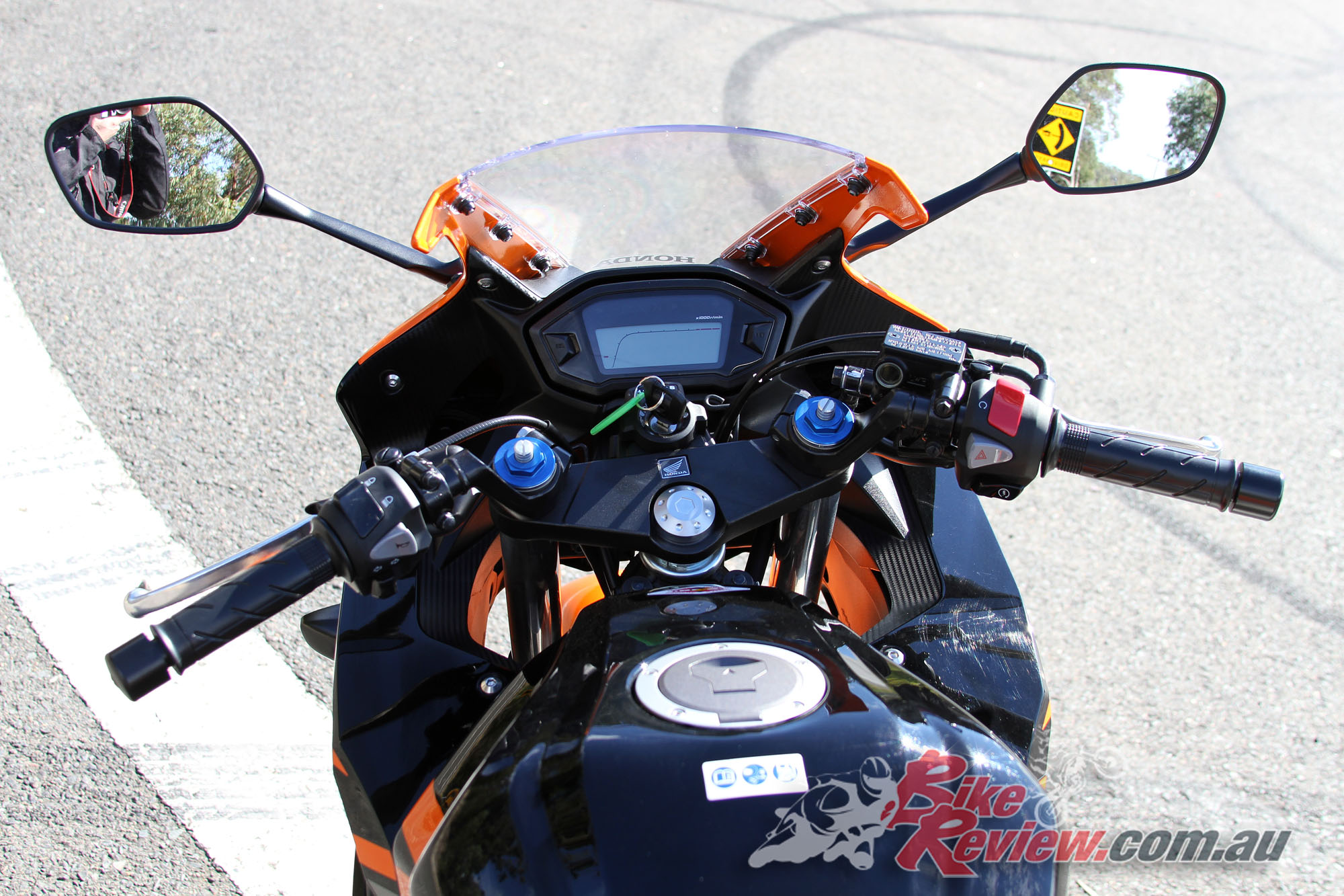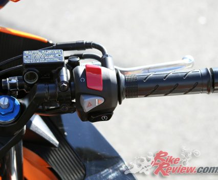 Oh and there’s a hazard light switch on the right switchblock and the CBR500R includes the HISS system (Honda Ignition Security System), which immobilises the bike if the right key is not present for additional security and theft deterrent.