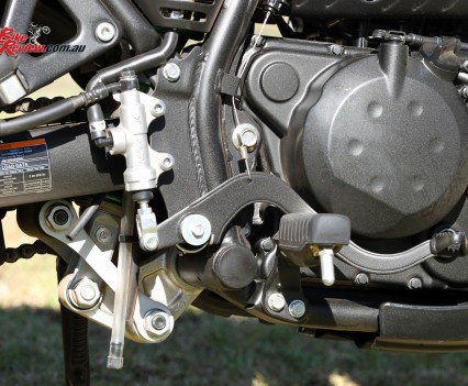 The engine puts out, wait for it, 20hp@4500rpm and 40Nm@3000rpm in LAMS form. In unrestricted form in the USA and Canada the bike is 44hp and 50Nm.