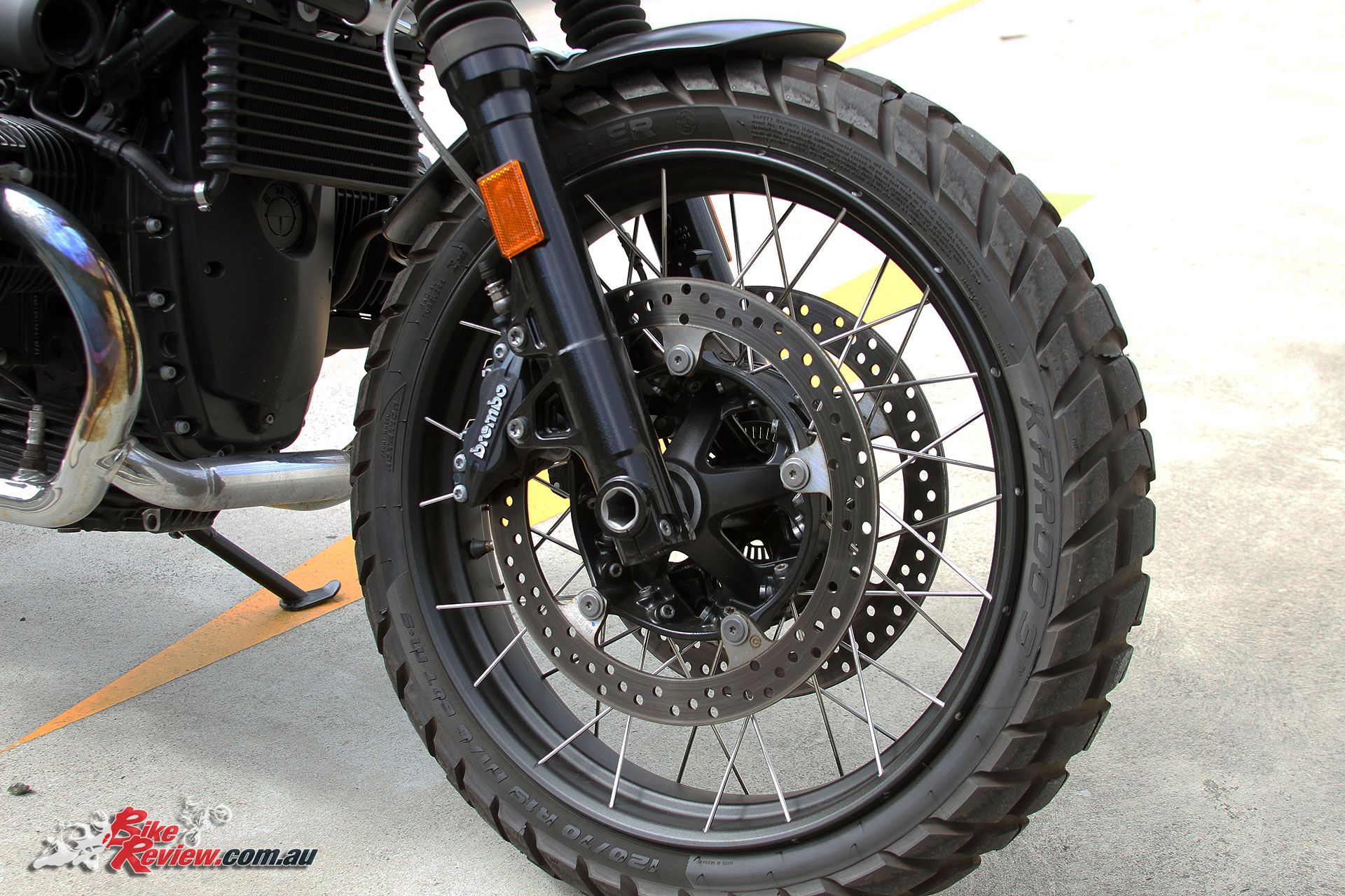The on and off-road capability is further reinforced by the knobbly tyres, with standard features like the Boxer-twin engine, modular frame for customising, 19in front and 17in rear wheels and strong Brembo front brakes promising a characterful machine.
