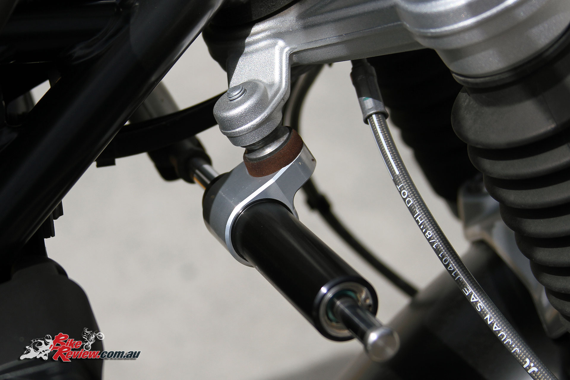 Suspension is standard 43mm forks, non-adjustable, while the rear suspension is a Paralever central spring strut setup, with preload and rebound adjustment. Rubber gaiters on the forks offer the true Scrambler look, while front wheel travel is 125mm, and on the rear 140mm.