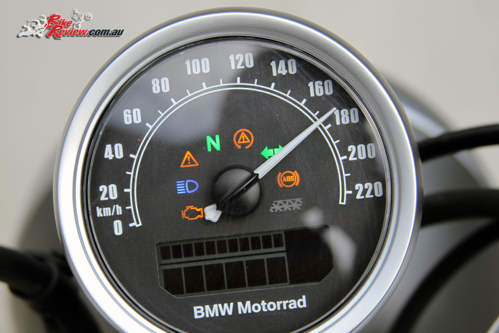 The dash is a simple analogue speedometer with LCD multifunction display, toggled by the left switchblock.