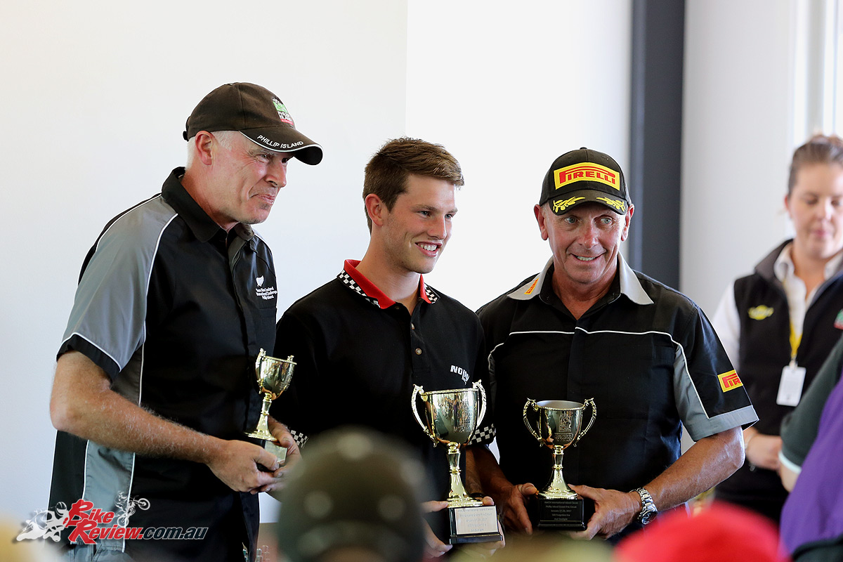In the massive weekend of historic competition, Murray Seabrook collected the Phil Irving Memorial Trophy for the most points collected by a competitor outside the International Challenge races. Seabrook defeated closest competitors Dean Oughtred and Lachlan Hill.