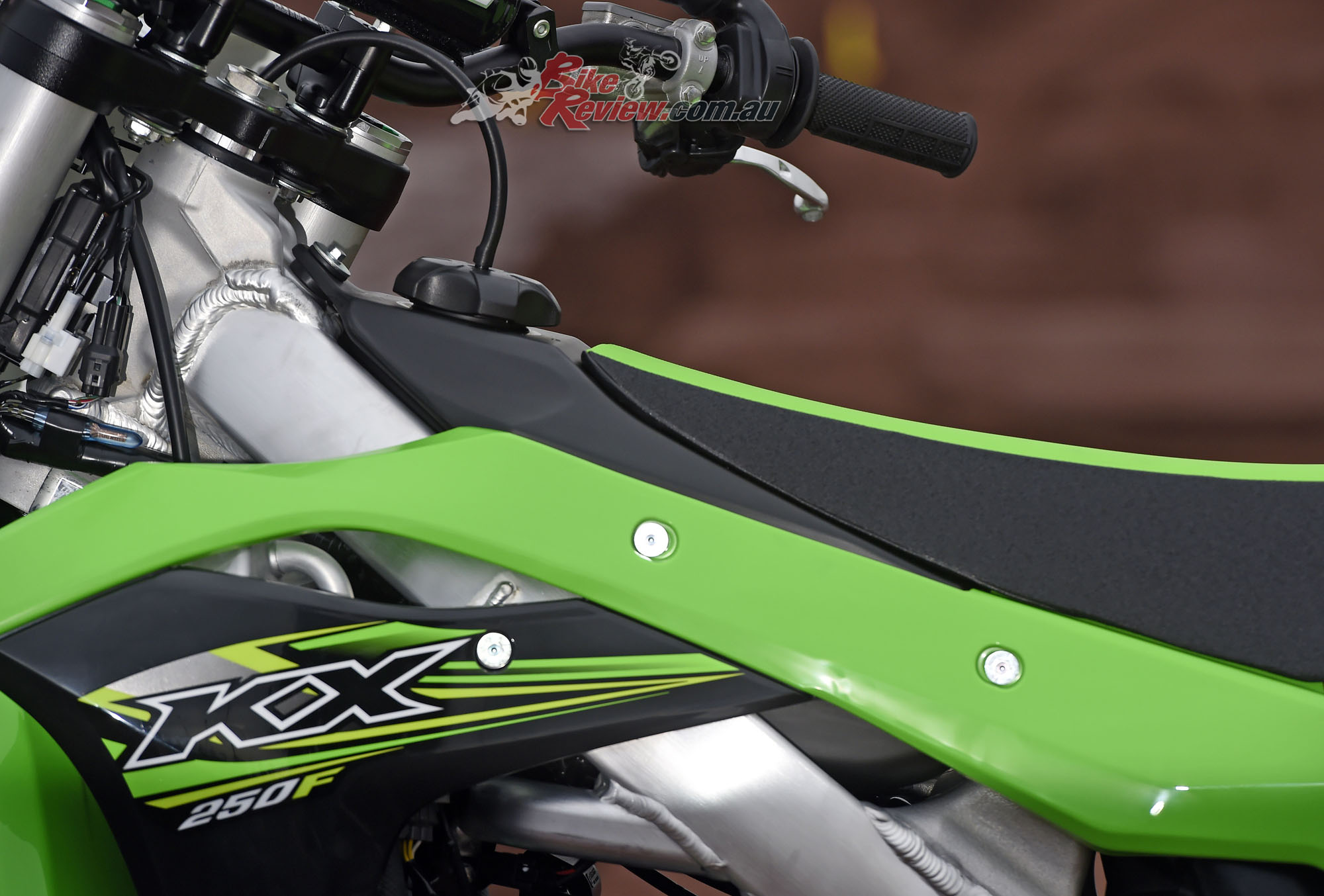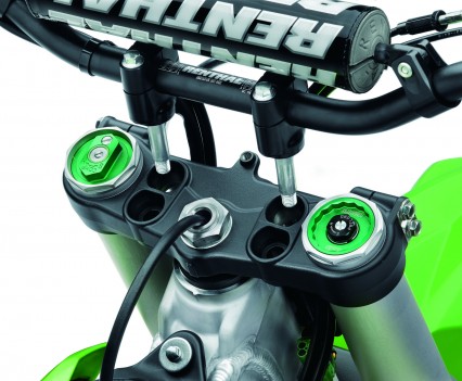 Another easy to use electronic feature also carried on from the 2016 KX250 are the three supplied FI Couplers, colour coded in White – Soft Terrain, Green – Standard and Black – Hard Terrain. These couplers require nothing more than unplugging one and plugging in another to suit the track conditions, and work by changing the mapping, making the power softer or harder hitting.