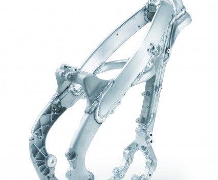 Having built a completely new frame has allowed the 249cc engine to be tilted back some seven-degrees. The benefits are two fold, firstly this lets the bike turn quicker as there is less inertia from the crank and secondly the intake track is much straighter. This allows for better intake efficiency which in turn produces more power.