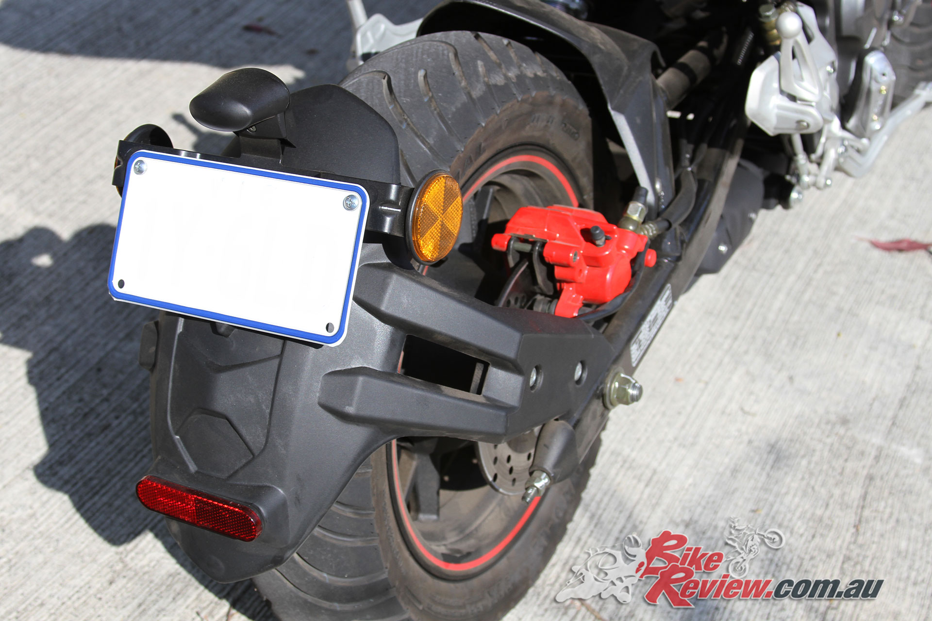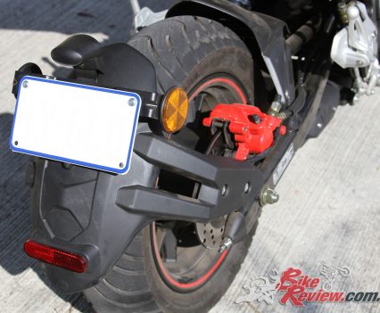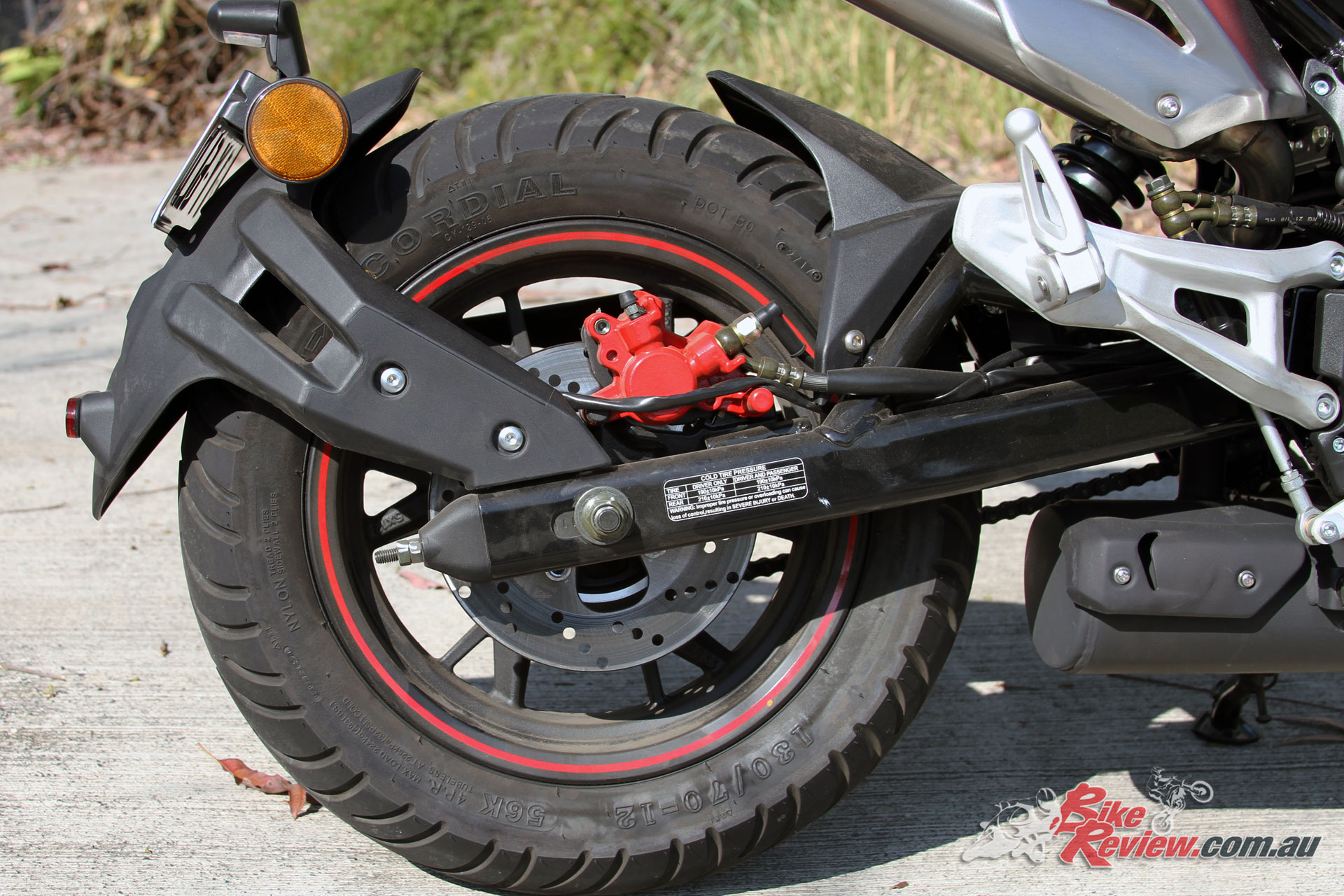 Wheels & Tyres: Aluminium alloy 12” x MT 3.0 DOT, 120/70 – ZR12, 130/70 – ZR12