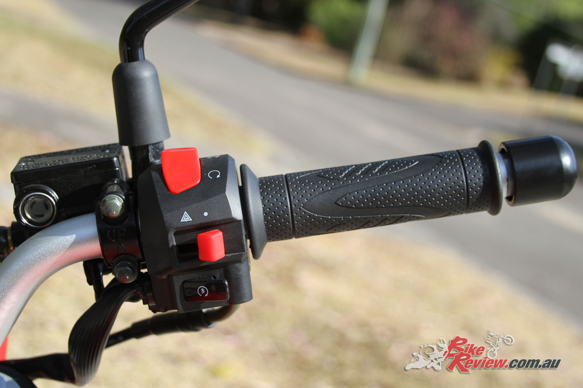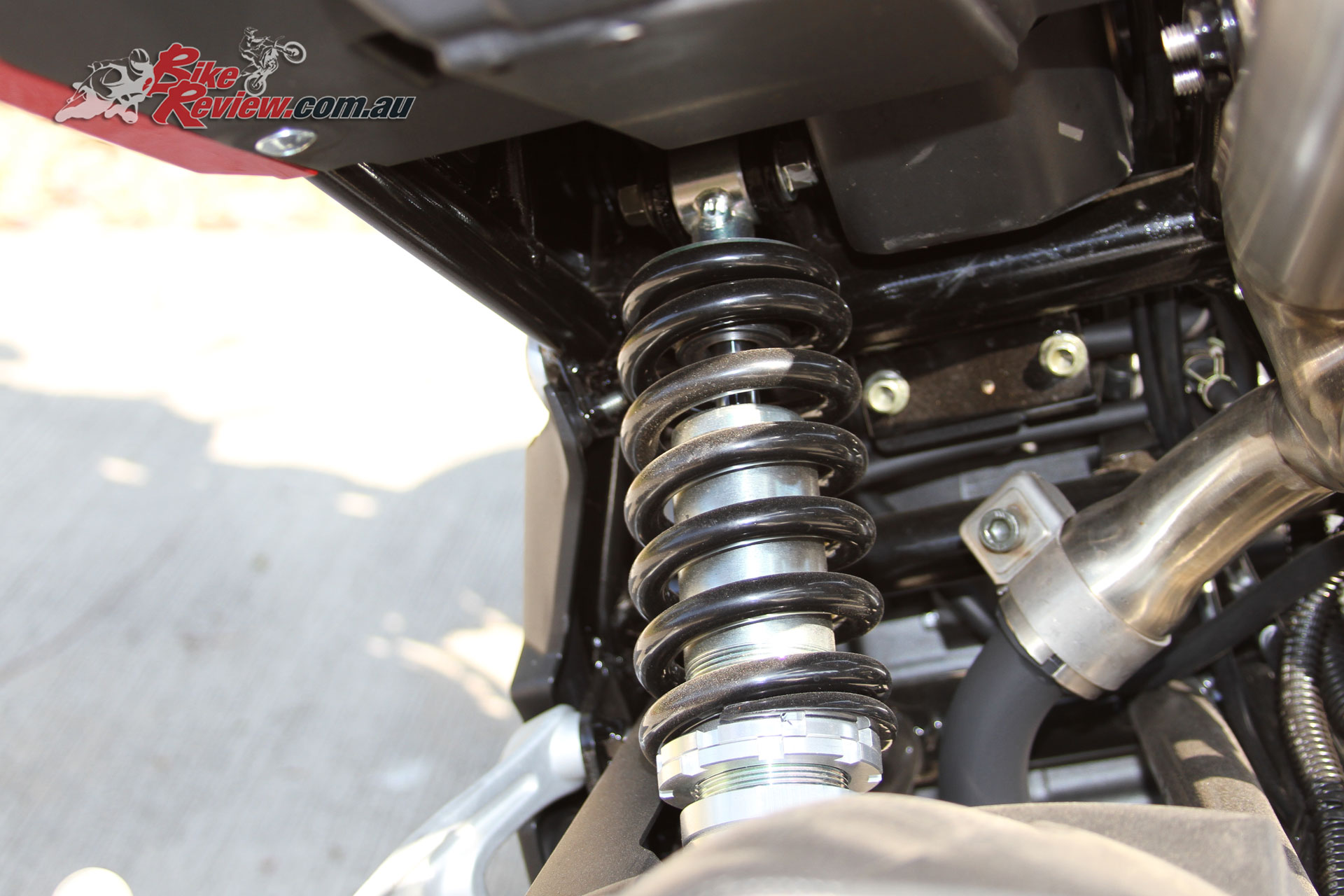 Brakes: Single 220mm front rotor, radial mount two-piston caliper, single 190mm rear rotor, single piston caliper