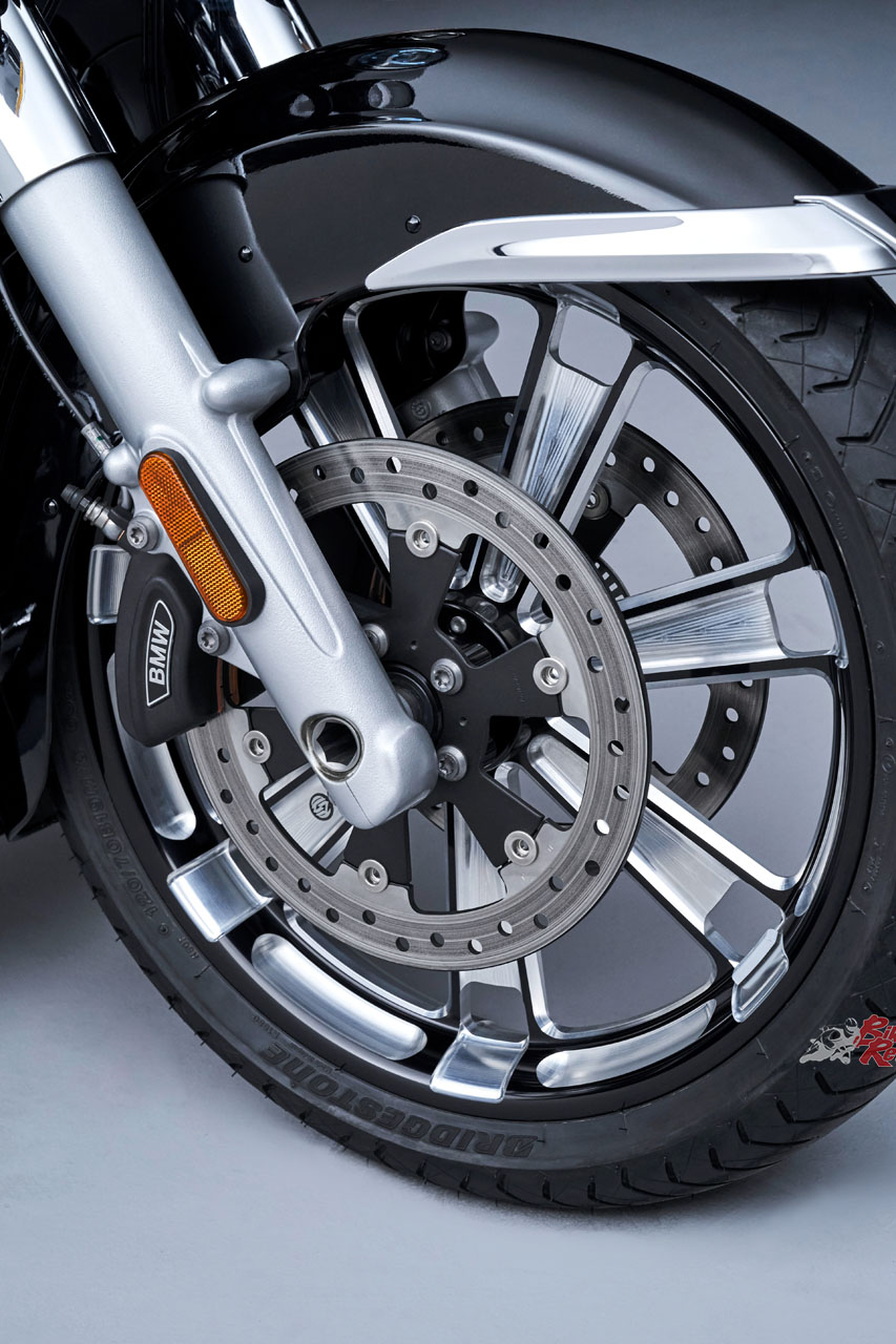 The new R 18 Transcontinental and R 18 B feature a double disc brake at the front and a single disc brake at the rear in conjunction with four-piston fixed callipers and BMW Motorrad Full Integral ABS.