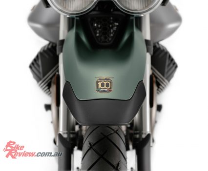 Other distinguishing details are the eagle in a gold finish and the dedicated logo that graphically celebrates Moto Guzzi’s 100 years.