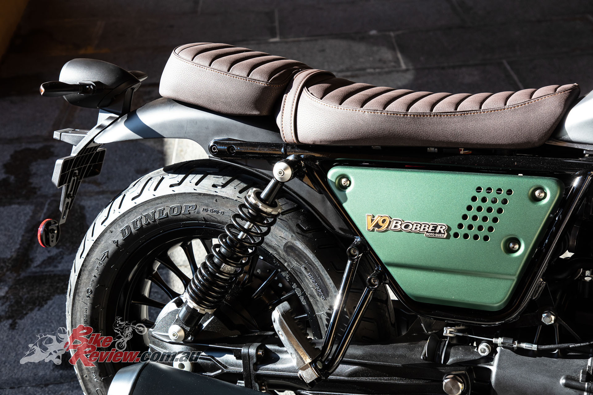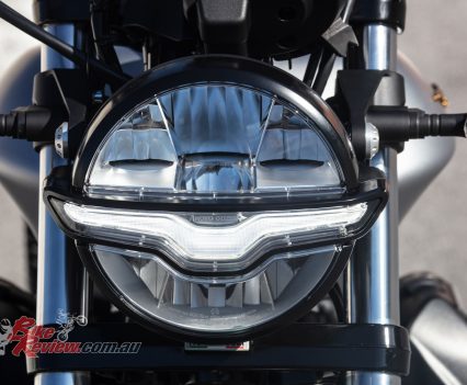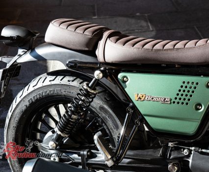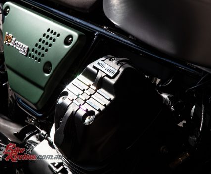 Green was also the first colour adorned by a Moto Guzzi with the Normale, the first model, and probably the most iconic of their colours. Moto Guzzi say the Style Centre reinterpreted it in a modern approach with a matt finish and associated with metallic colours the express the solidity and authenticity of the Larian brand. The body colours are matched with a saddle covered with a natural coloured material, like that of leather, to highlight the typically Italian attention to detail.