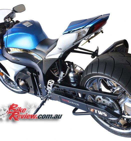 The sub-frame has been totally replaced with a Ducati 1098 item, which was modified with the help of Joseph Salter to fit the TL1000S frame, before being powder coated to match the frame and swingarm.