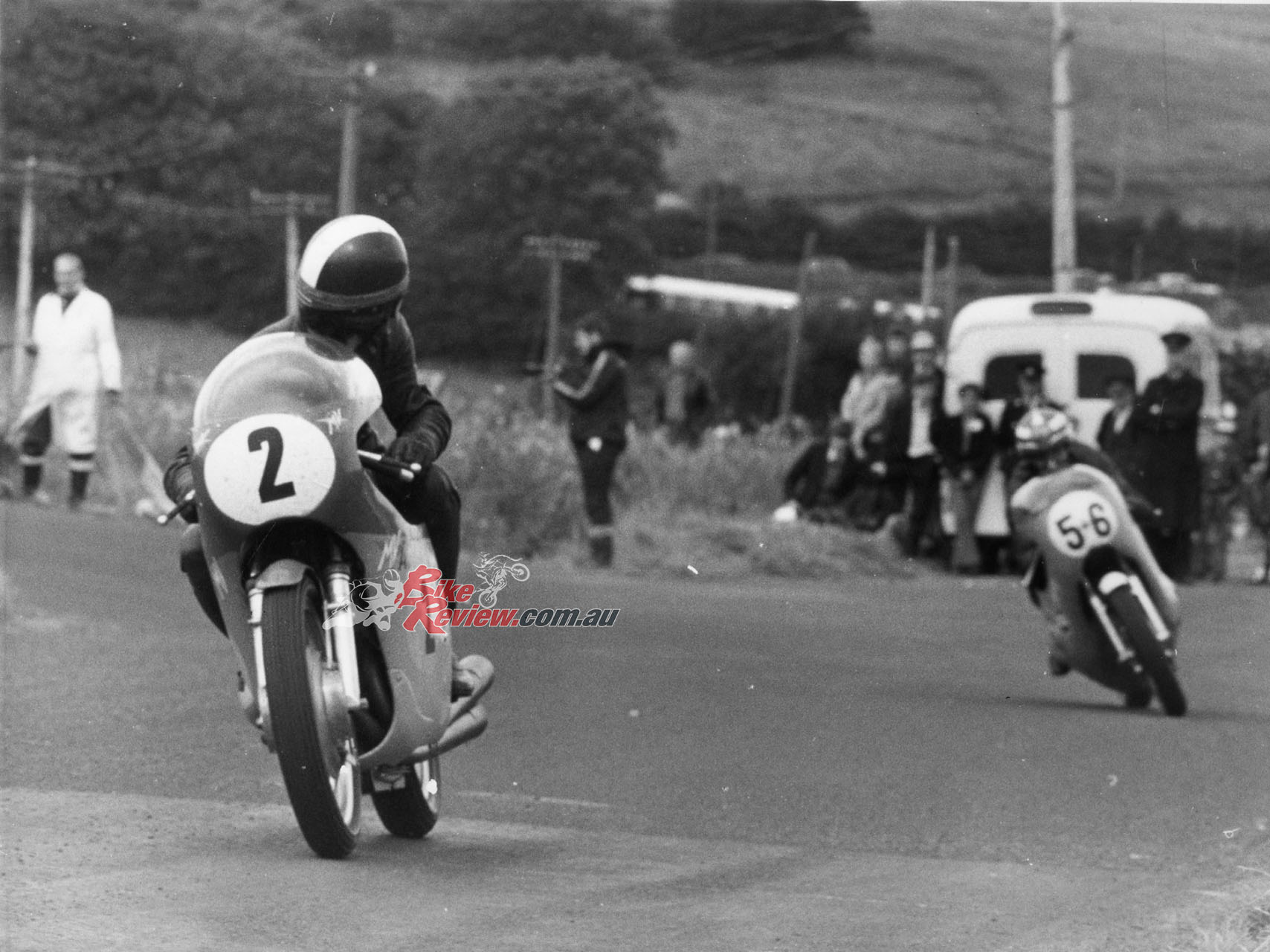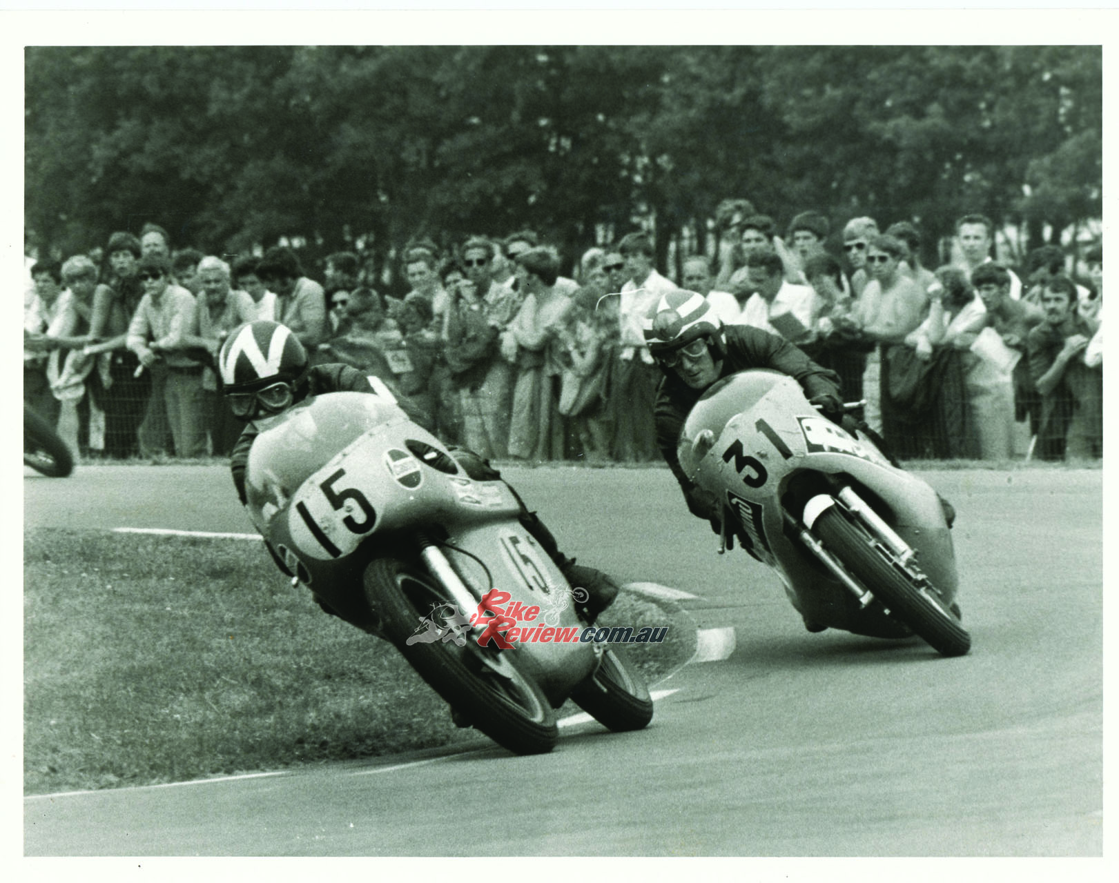 Ago looking back at Molloy on the H1R at the 1970 Ulster GP. Imagine Ulster on a 500cc two-stroke… mental!