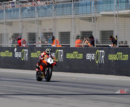 The race start saw Miller struggle yet again as he just could not get to grips with the Ducati launch control. But that turned out not to matter as a series of incidents at turns 1 and 3 again brought out the red flag. The first involved Honda rider Hook and Yamaha’s Sissis, with both riders getting up immediately but bike debris littering the track. The 2nd incident was rather more severe however, with Falzon sustaining serious injuries to his back and pelvis, and breaking his femur, and privateer Cooper knocking his head and having no memory of the incident plus his bike caught fire.