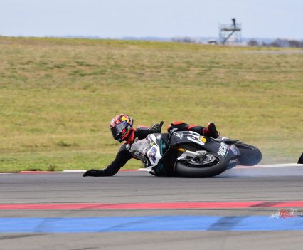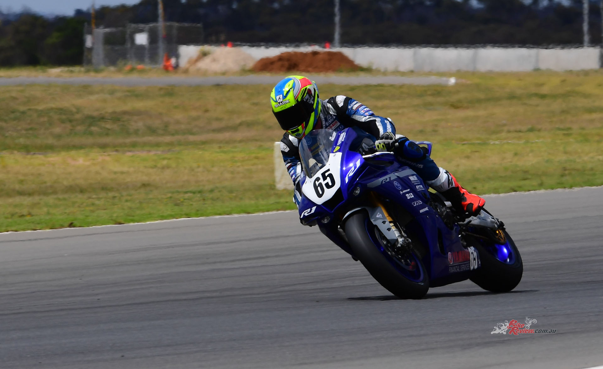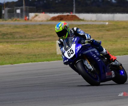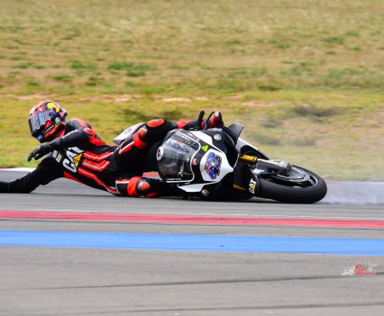Running a MotoGP-style double qualification format, the top three of West (Yamaha), Wagner (Yamaha), and a still-wounded Troy Herfoss (Honda) progressed through Q1 to ride for pole. The Q2 session ended prematurely for Westy as his R1 called it a day at the back of the track. Miller almost repeated his earlier mistake but managed to stand the bike up and get away with a wide exit out of T1. Falzon briefly headed the table Maxwell lit the blue touch paper and absolutely operated the 1:50.9 lap record he had set early in the morning – ultimately finishing top with 1:50.5!