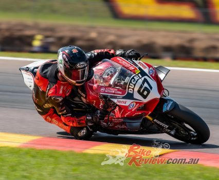 Early on it was Bryan Staring aboard the frankly stunning indigenous-round-liveried DesmoSport Ducati who banked the fastest lap. Staring looked and sounded afterward very comfortable aboard the 2021 race winning team bike. Staring bristled at suggestions that he was losing touch with the leading pair of Maxwell and Jones and his early form- and indeed pace across the day- indicates that the Western Australian is well in the hunt not only for the top step this weekend, but championship contention.