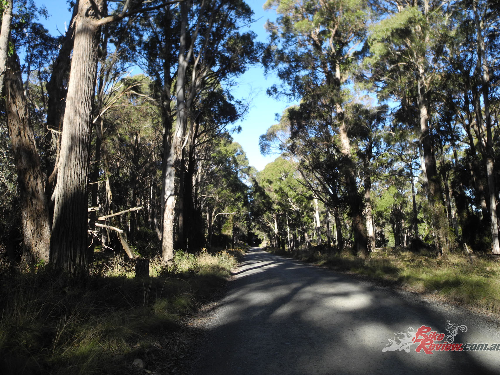 The surface of the Forest Road is quite good all the way along, with only small changes depending on whether it is in the park, the conservation area or the state forest. Because log trucks use it where it runs through state forest (Oh, didn’t I mention the log trucks?) the surface tends to be smoother and slightly better maintained.