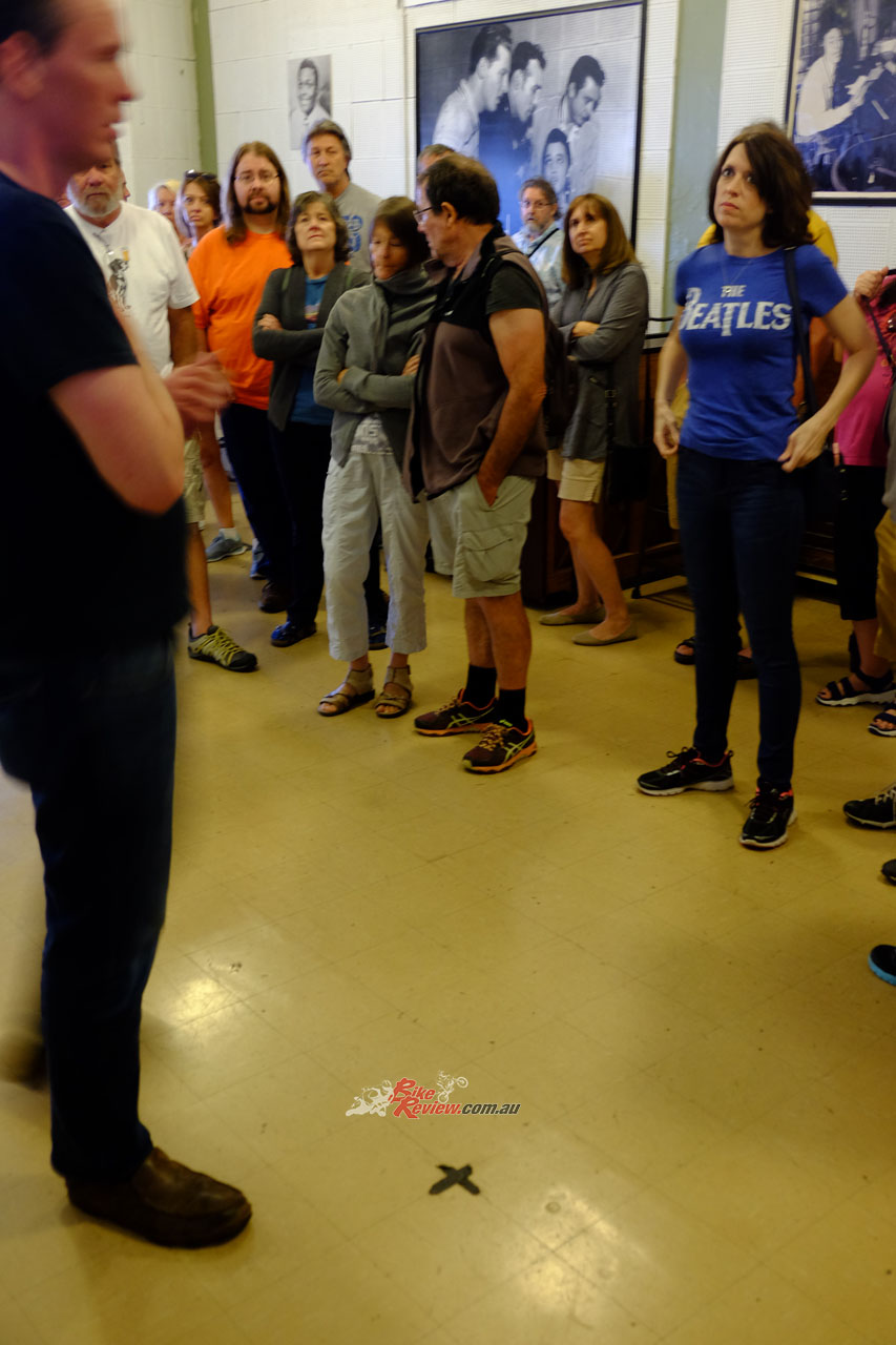 Then I got back onto the Boulevard and rode my Indian Springfield in the other direction, and turned west into Union Avenue to number 706, Sun Studios. Unlike the Graceland megaplex, Sun Studios looks pretty much the way it did when Elvis, Johnny Cash, Jerry Lee Lewis and so many other greats cut their early records here. The small café downstairs is funky and well-priced and sells some souvenirs I would buy, unlike the Elvis ashtrays at Graceland. The tour cost US$14 and included an informative and clever guide.
