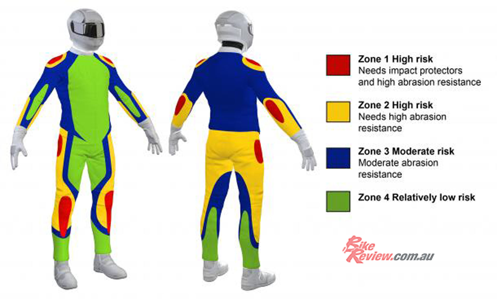 “We selected the 10 most popular garments including leather, textile and denim,” she says, “and tested them for abrasion resistance (at Deakin Uni) – none would have passed the CE standard EN 13595 – and thermal resistance (thermal comfort) on a thermal sweating manikin at 30C and 40% humidity at RMIT Uni. All performed poorly. The suit that performed worst for thermal comfort was then tested on 12 volunteers in a Climate chamber at Wollongong Uni.