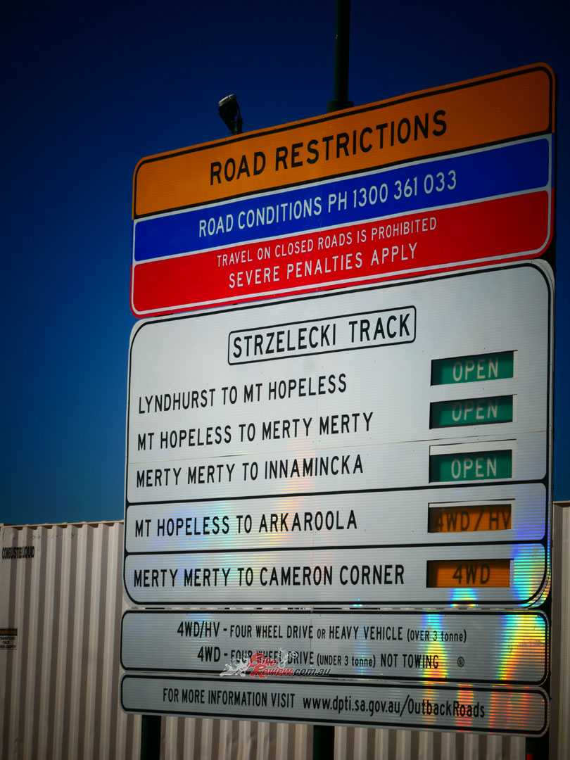 It is most likely that you will approach the ranges from the south, through Hawker. You can get there from the north as well, by way of the Strzelecki, Oodnadatta or Birdsville tracks to Lyndhurst but that takes a little more preparation than just rolling up the highway from Port Augusta or Adelaide. If you do come from the north, just follow the sealed road as far as Leigh Creek where you can get fuel – there is none at Lyndhurst unless you’re riding a diesel — and then tackle the ranges that way on to Arkaroola.