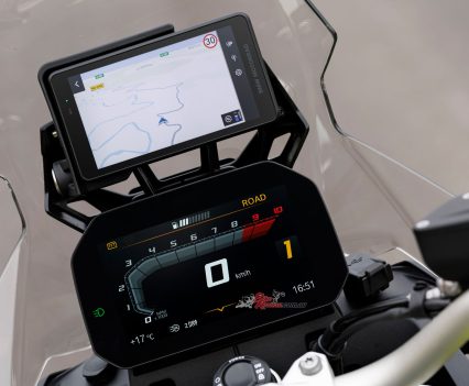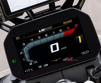 As aggressive as the new styling may look, the engine hasn’t changed in its overall character. Now with those extra cubes it delivers more punch down low and more outright power higher up in the rev range. Combine this with a big weight loss and the GS is sprightlier and sharper in its power delivery, yet relaxed enough to sit on highway speeds all day long. The engine is well-balanced and not vibey at high rpm, with low-speed control a highlight of the package combined with the light and nimble handling dynamic as a result of the slimmed-down machine.