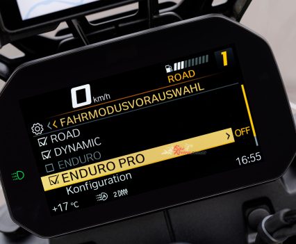 There are two different packages available from the factory – so you have to order these when you order your bike – available to bolster the base model GS or GS Enduro. There is the Dynamic Package (as tested) available which adds a quickshifter and Pro riding modes. The quickshifter is great in tight, technical situations and the Pro riding mode feature allows you to adjust the parameters of throttle response, ABS and TC electronic controls in each of the riding modes, but not alter engine braking.