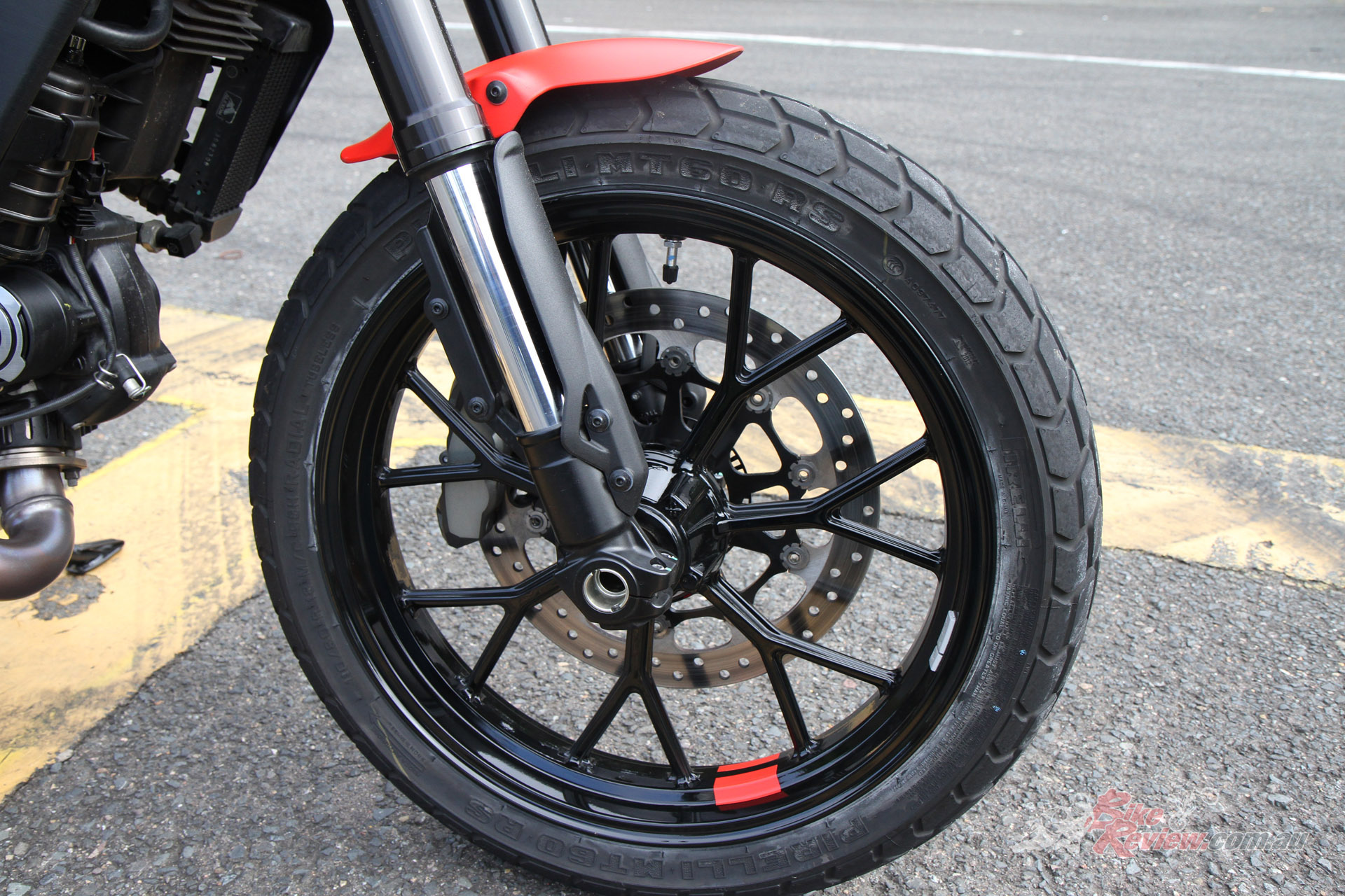 Wheels & Tyres: 10-spoke in light alloy, 3.00 x 18in, 5.50 x 17in, Pirelli MT60 110/80-18, 180/55-17.