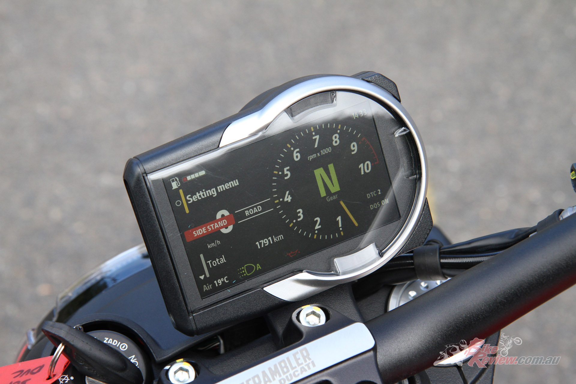 Other software and electronics wizardry provide options for the Bosch ABS, which is lean-sensitive and the Ducati traction control (DTC) system, which I think is what kept the front wheel hovering just off the deck under sudden acceleration. Honestly, I left the ABS and DTC settings as the bike came because it worked quite brilliantly from the minute I spun a wheel on it. The self-cancelling indicators, on the other hand, are an unreliable nonsense that is made up for by the mirrors, which are always clear and vibe free and also don’t hang out beyond the handgrips.