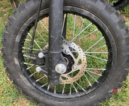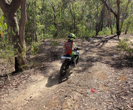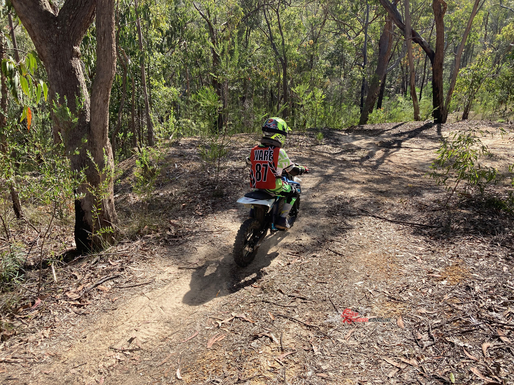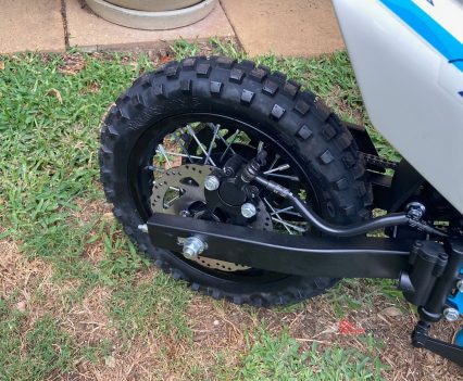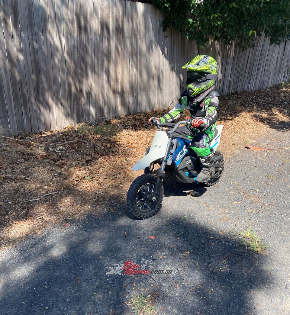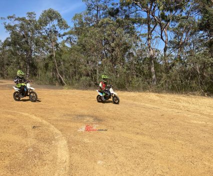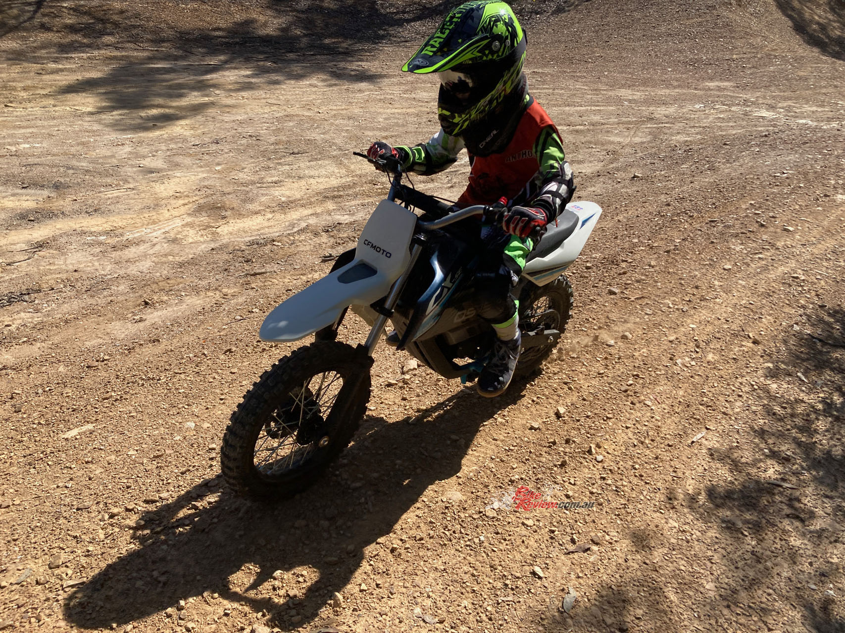 “I wish it had a little more power, just a bit more, it is slow up hills. The throttle is snappy in Mode 3 but the bike is slow in Mode 2, so I have to ride it with the snappy throttle. The brakes are good, the shock is really good too, better than the shock on my Torrot. and the forks don’t bottom out. The tyres slip around a lot on the loose surfaces. It’s more comfortable than the PW50 or KTM50 SX Junior was, and soaks up the bumps well and is fun riding in the single track trails and around the house and yard!”