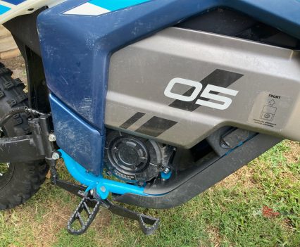 Both bikes run a 48V, 24Ah lithium-ion battery with a 1152Wh capacity and a claimed charge time of 0 to 100 per cent in 5 hours at home. The battery is swappable for a fully charged spare, but only comes with one battery. A spare battery is available for $1099 RRP. Both bikes come in one colour, Baltic Blue, and look great in the flesh. They also come with a 12-month warranty and CFMOTO claim a 60km range for both bikes, as opposed to running time. We did not measure distance, only time, and the average for the CX-5E was 45-minutes, while the CX-2E was 120-minutes!