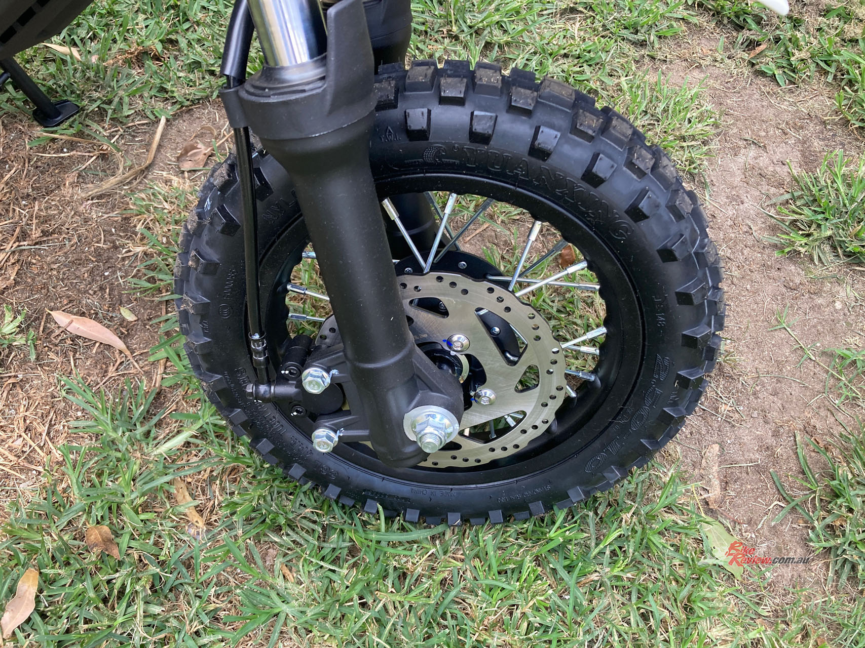 Both bikes have a steel-tube double cradle frame and 31mm conventional forks and a centre-mounted single shock with preload adjustment, the CX-2E has 72mm/65mm travel and the CX-5E has 105mm/100mm of travel. The rear brake on both bikes is a pedal, the front a bar mounted lever. Both bikes run a safety lanyard attached to the rider’s wrist, which will cut the power in the event of a crash.