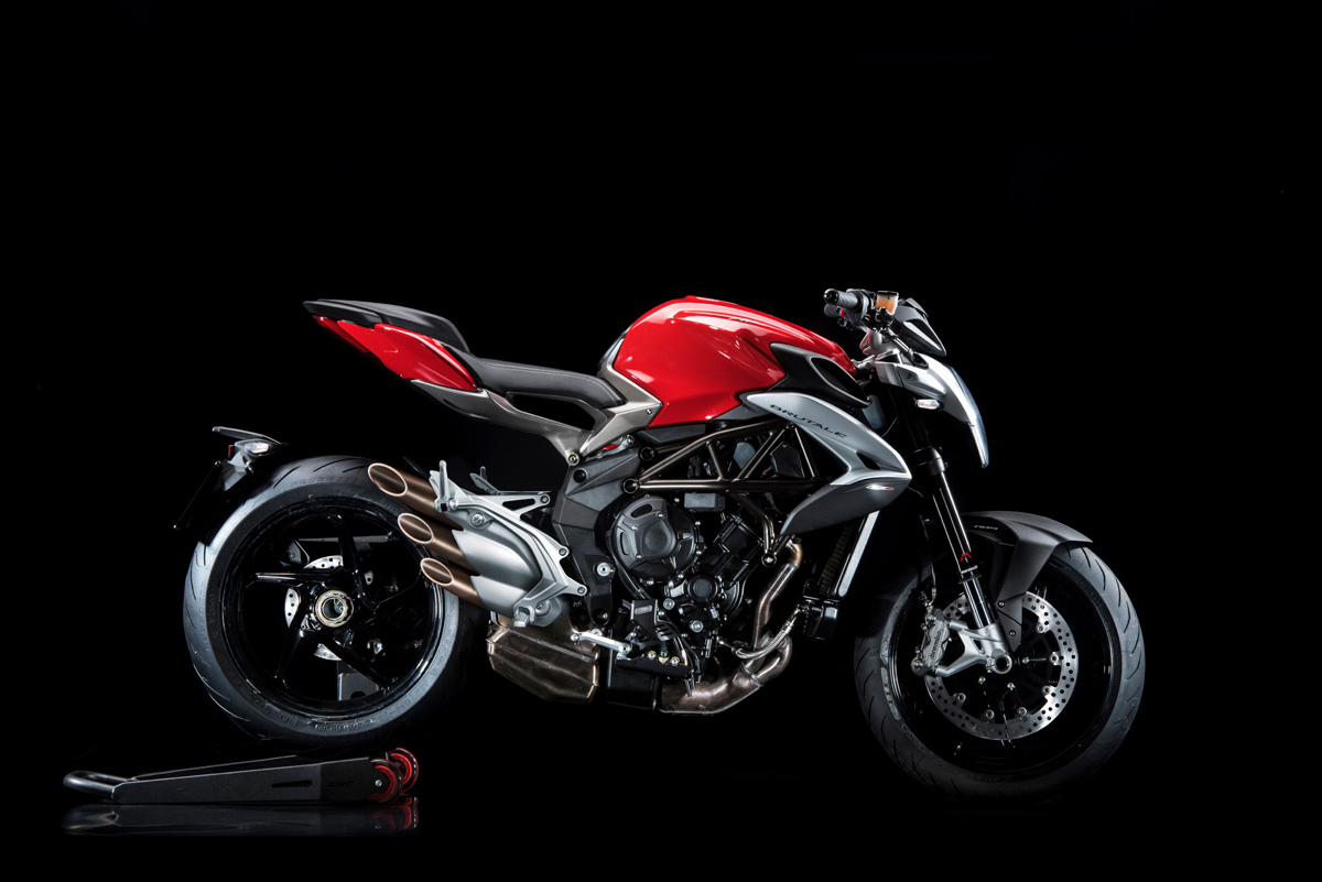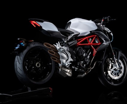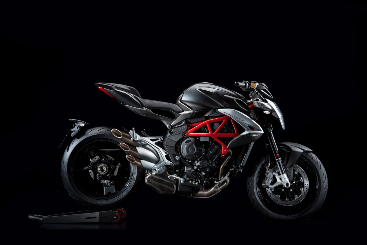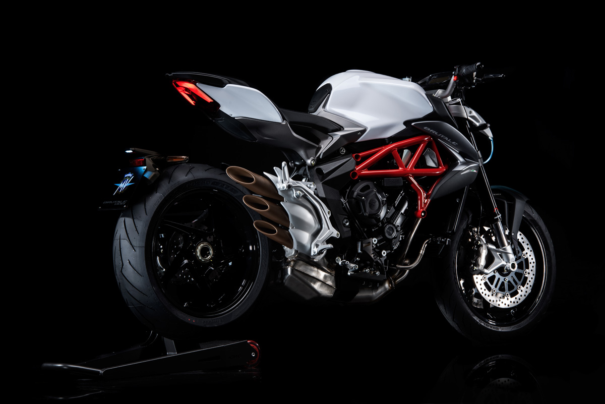 The bike is now longer than the previous version, with a wheelbase that has been extended to 1400 mm (+20mm), and a trail that changed from 95 to 103.5mm. At the front the bike mounts 43mm USD aluminium Marzocchi forks with a travel of 125mm that pairs with the rear Sachs shock absorber, tethered to the single-sided swingarm. MV chooses Brembo for the brake systems, with a pair of 320mm front floating rotors and four-pistons brake calipers, while a rear twin-piston caliper acts on the 220mm rotor. Speaking of the engine, which features the iconic exhaust that looks inspired by the pipe organ of the most authentic Italian church, the maximum power output is 116hp at 11,500 rpm, while the top speed indicated by the brand is 237km/h.