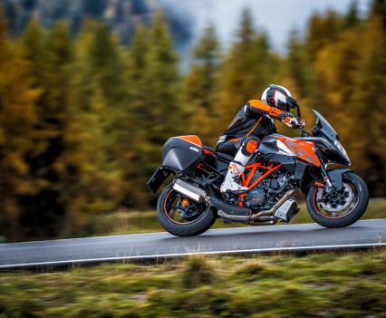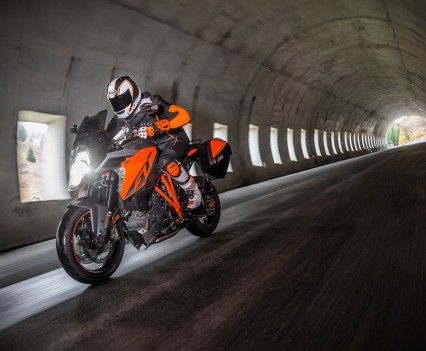 The core of the Super Duke GT is what KTM calls the, “LC8 two-cylinder platform”, based on a 1301cc liquid-cooled V-Twin. That now, after its appearances in the RC8R racer, Adventure travel enduros and Super Duke R naked bike, is mounted on this sport touring bike and delivers peak power of 173hp.