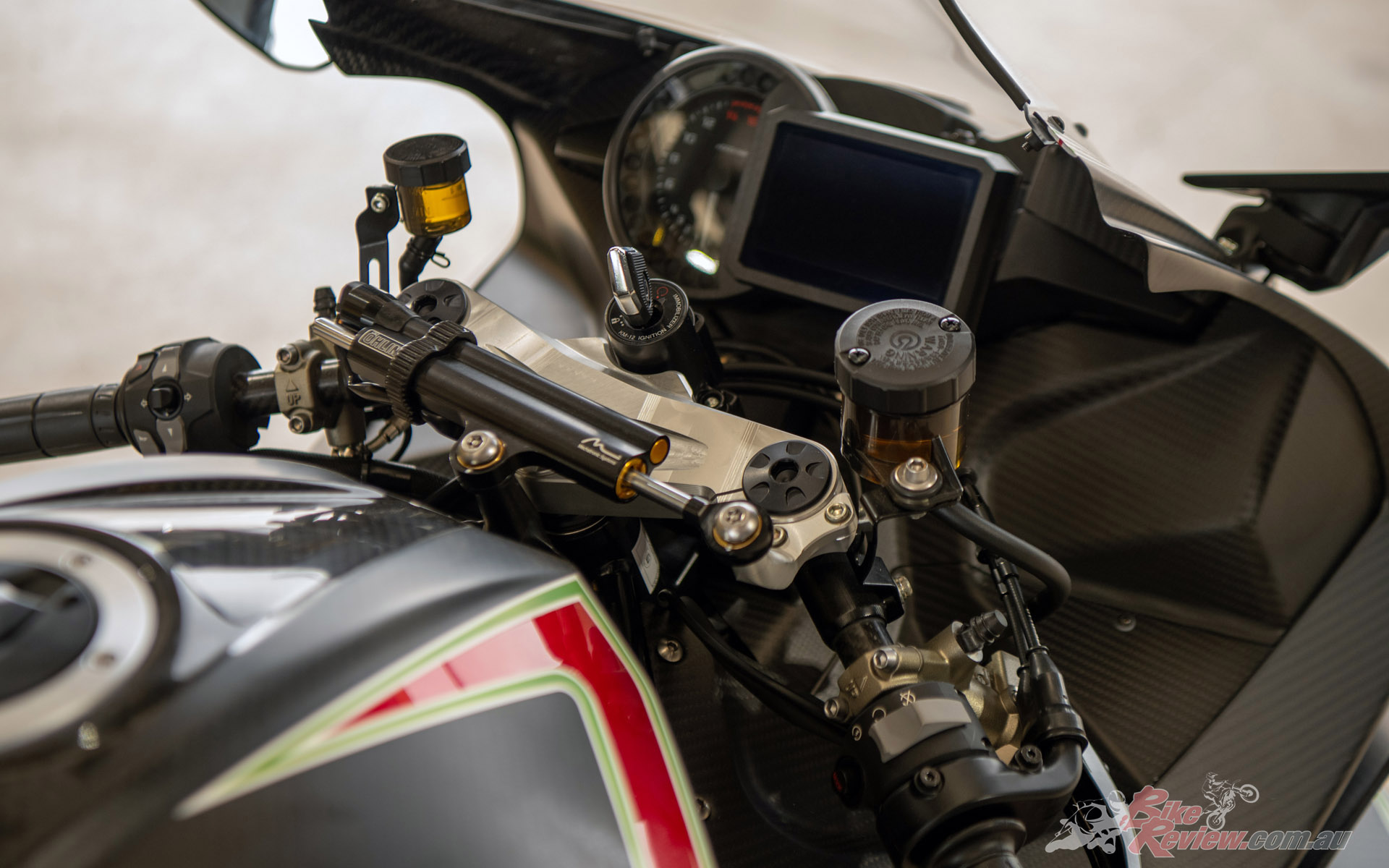 If, like me, you get excited about nice TIG welds, perfectly laid carbon-fibre, superior paint finishes and engineering in general, then this is the bike for you. I could easily have the Bimota sitting in my lounge and be happy looking at all the technical work that has gone into designing this Italian exotic masterpiece, which is exactly what it is. Just look at the breakout photos and see how the centre-hub steering works and how the front suspension adjustments are operated from the rear.