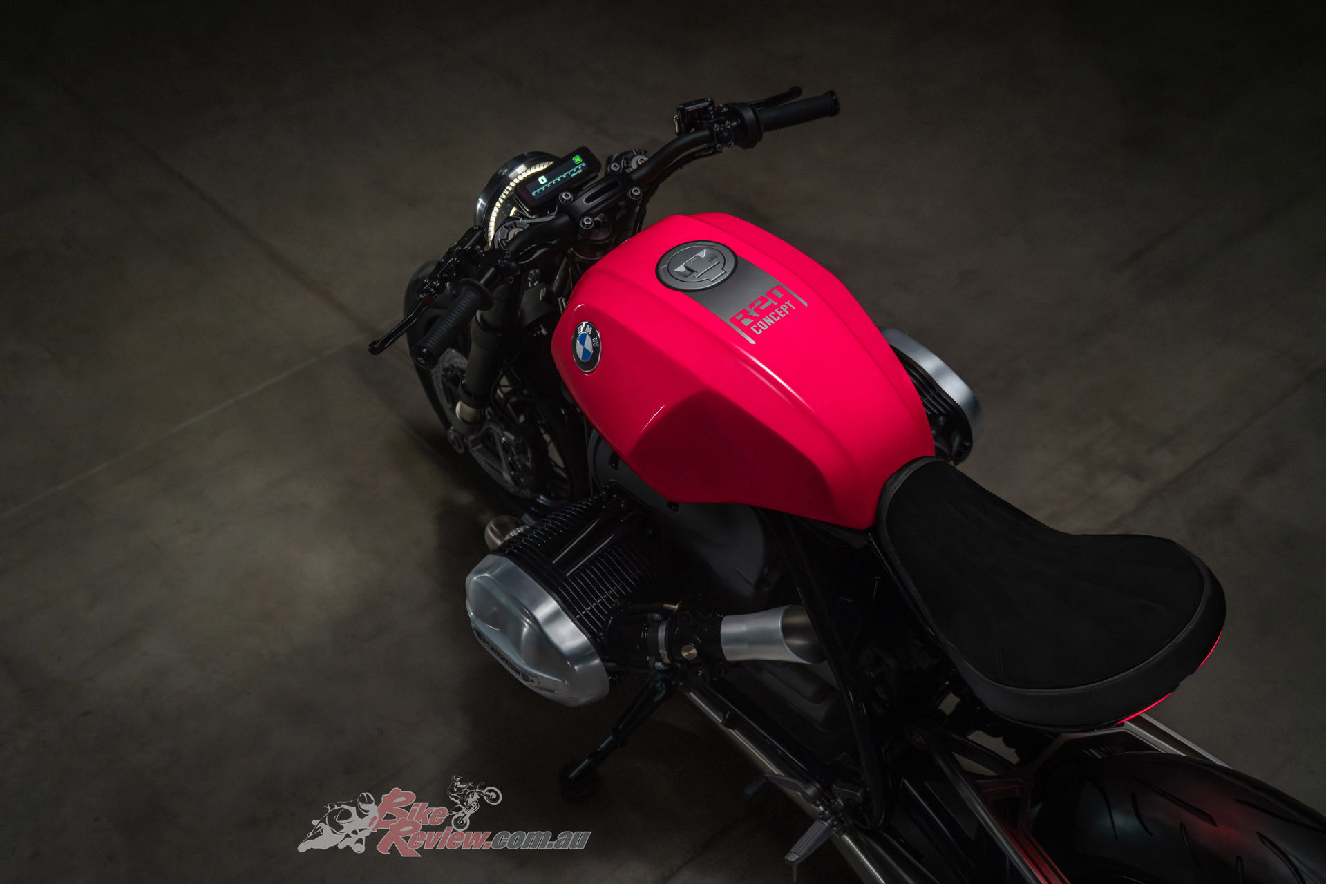 The R20 is “not a promise that a production version of the BMW R20 will follow,” said Buckan, And it is important to remember that this Concept is, indeed, a concept. As it stands it would never get approval to roam the roads. Neither the open aluminum intakes nor the fat exhaust pipes could ever grace a street-legal production model. Those fat megaphones offer no muffling whatever. Also missing are fussy bits like mirrors and a registration plate. The taillights might make it into production, integrated into the solo saddle for now.