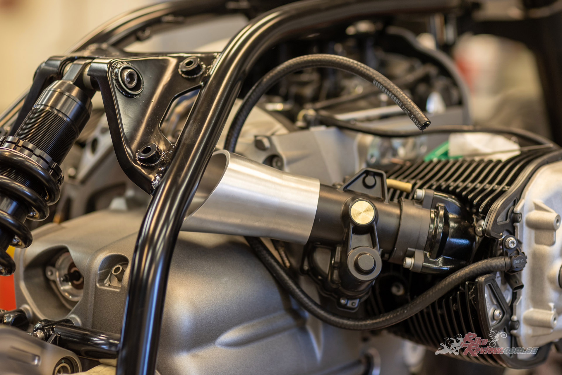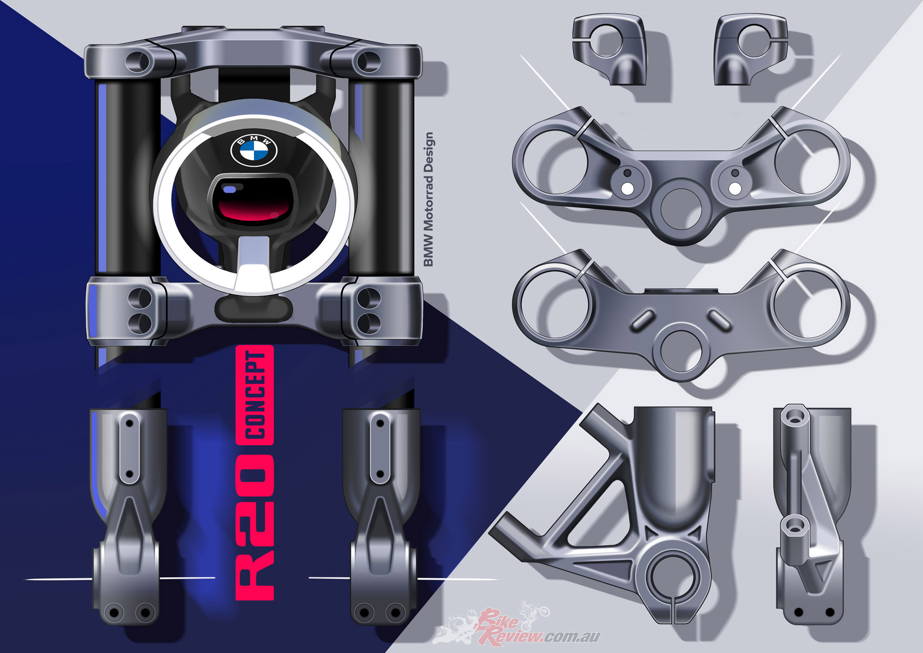 For now, what you get is pretty much what you see at the moment. We do know that the big boxer is even bigger, with a displacement of 2000 rather than “just” 1800cc. Assuming the stroke remains unchanged at 100mm, the bores and pistons would have to grow from 107.1 to around 113mm. As well, the magazine thinks that given the maximum 158Nm and 91hp of the R 18 cruiser engines, the Concept should produce well over 100hp, especially since the 1200cc boxer engine of the BMW R 12 nineT, which is also air/oil cooled, puts out 109hp.