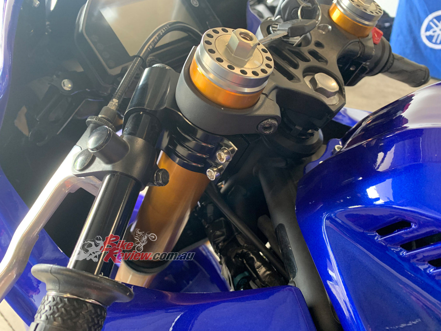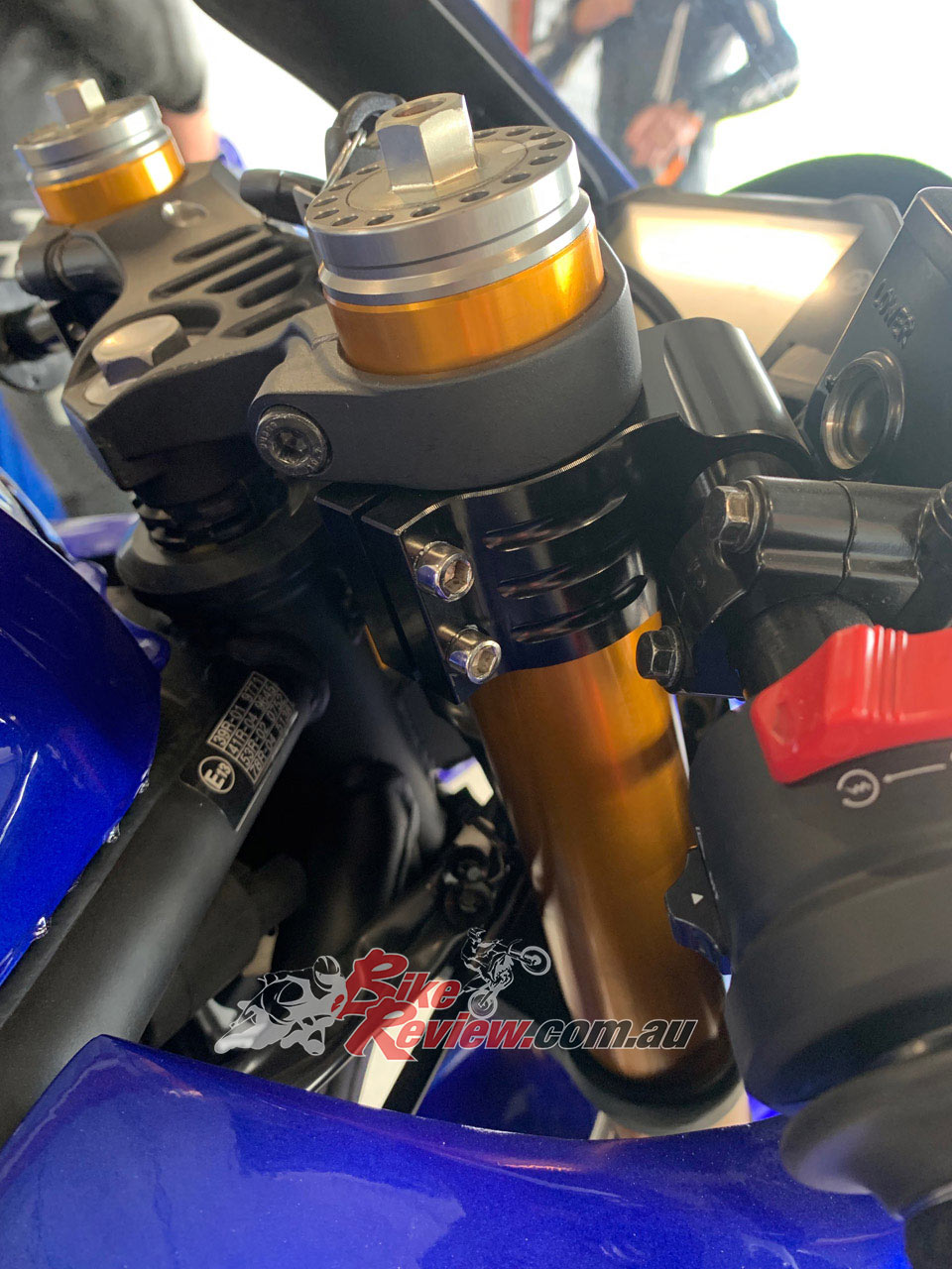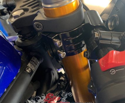 Once you have reinstalled your forks, the racing clip on handlebars can be fitted. These, along with the racing rearsets allow for a much more streamlined riding position when racing, and also allow a lot of adjustment for different rider heights. You may need to cut off the cable guide under the ignition switch as this may now route the cables incorrectly depending on the handlebar location.