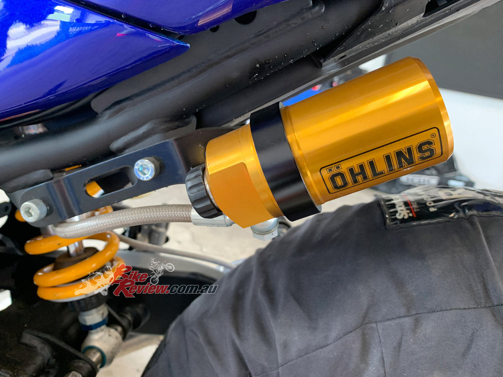 To remove the standard shock absorber and install the racing item you will need a set of footpeg stands, car axle stands work quite well for this task.