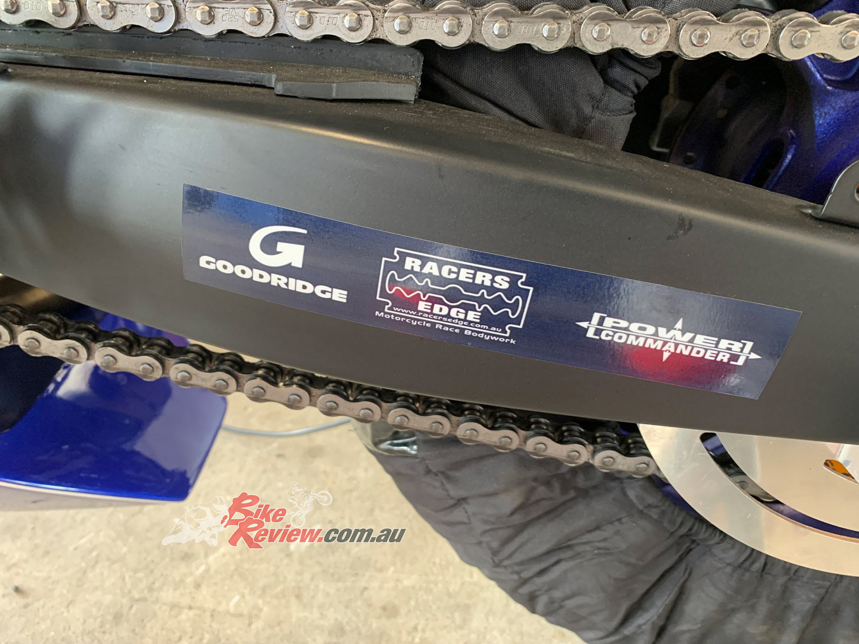 Removing all the lights, cowlings, mirrors, upper chain guard is the beginning of the process, but before removing the side stand, install a set of stand pickups on the lower rear swingarm tabs and sit the bike upon a race stand.