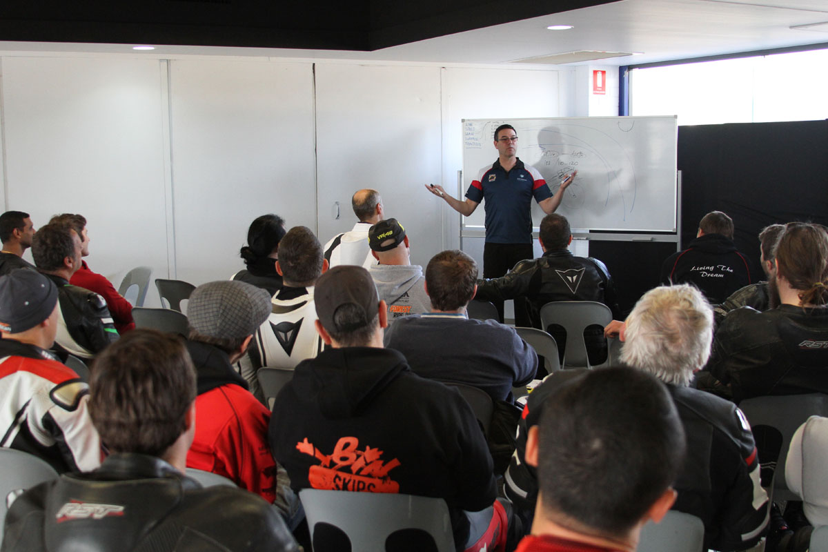 After my bike was inspected and deemed ‘track-worthy’, the charismatic Steve Brouggy, the co-founder and managing director of CSS, gave us an introductory safety briefing. Steve was quick to establish a sense of ease and excitement among the students, peppering his talk with jokes that bordered on inappropriate, but were nonetheless hilarious. After this initial talk, we were split into our respective classes and assigned coaches with no more than three students allocated to each coach.