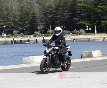 In terms of general handling, this bike is some serious fun in the corners. It stays forgiving, especially at higher speeds, and I felt confident leaning it over further. As I always say, confidence is key in these LAMS approved bikes. You want something that makes you feel as though you’re hammering but can take more. At speed on the freeway, you won’t have any stability issues or any noticeable speed-wobbles, it’s pretty solid, even up near 130Km/h.